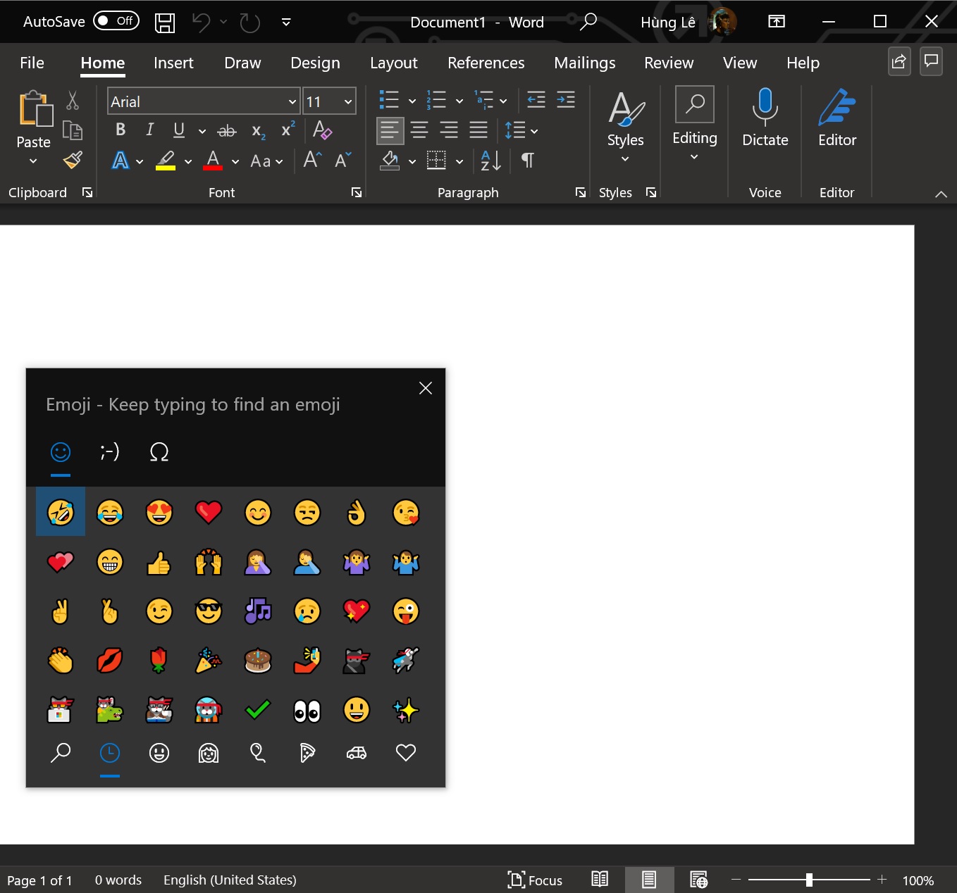 Thay vì phải sao chép các emoji, giờ đây, bạn đã có thể sử dụng bộ chọn emoji tích hợp sẵn trong Windows 10. Để sử dụng, hãy nhấn tổ hợp phím Windows + . (dấu chấm) trên bàn phím trong khung gõ văn bản nào đó. Công cụ này cho phép bạn tìm kiếm emoji bằng bàn phím và chèn nó vào khi cần.