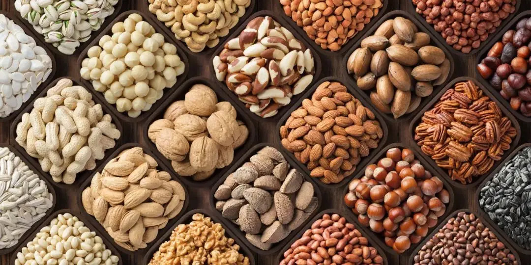 Các loại hạt rất giàu chất xơ và cũng là một nguồn axit linoleic tốt. Nghiên cứu cho thấy rằng ăn 28g các loại hạt mỗi ngày có liên quan đến việc giảm 25% nguy cơ mắc bệnh tim mạch vành. "Hướng dẫn chế độ ăn uống cho cư dân Trung Quốc (2022)" cũng khuyến nghị nên ăn 25-35g đậu nành và các loại hạt mỗi ngày. Tuy nhiên, không nên ăn quá nhiều, tốt nhất nên ăn các loại hạt giữa các bữa ăn.