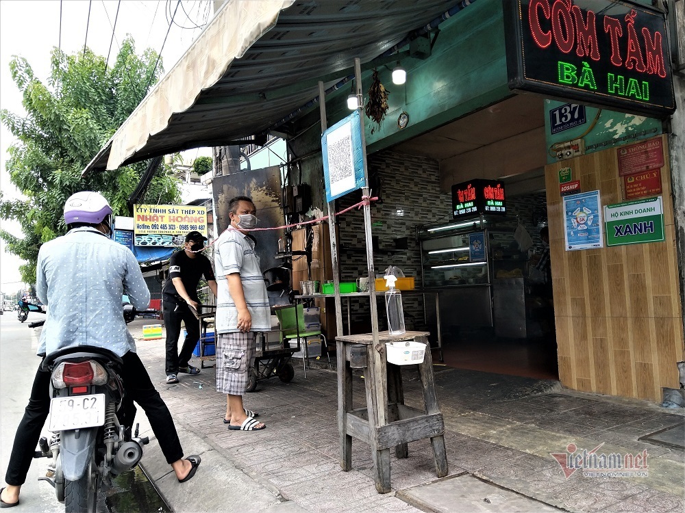 Chủ quán Bún bò Huế Bến Ngự (đường Huỳnh Tấn Phát, quận 7) cho biết, để được cấp chứng nhận “Hộ kinh doanh Xanh” và mở lại hoạt động bán hàng, cửa hàng của ông phải thực hiện “3 tại chỗ” cho nhân viên, đồng thời thực hiện xét nghiệm đều đặn và chi phí xét nghiệm tự chi trả. Hàng ngày, cơ quan chức năng của phường sẽ xuống kiểm tra việc tuân thủ quy định phòng, chống dịch.
