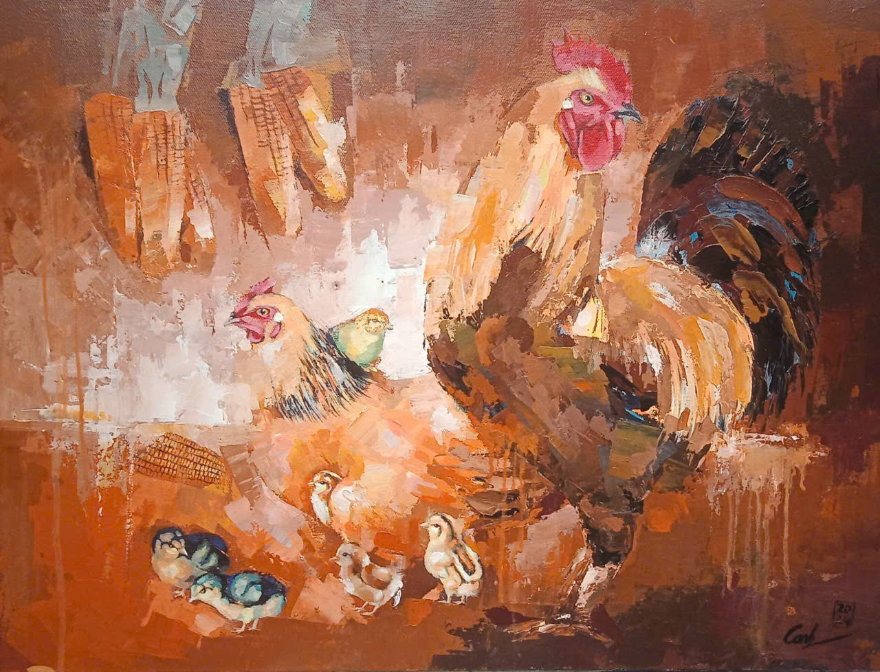 Đến nay, anh đã vẽ hơn 100 bức tranh, phần lớn lấy cảm hứng từ gà. Có thời điểm, tác phẩm chưa kịp hoàn thiện đã có người đặt mua ngay khi anh đăng lên mạng xã hội: "Nhiều người tin rằng tranh gà mang lại may mắn, sinh sôi và phúc khí cho gia đình. Đó là lý do tôi luôn muốn thể hiện sự sống, năng lượng tích cực trong mỗi bức tranh của mình".