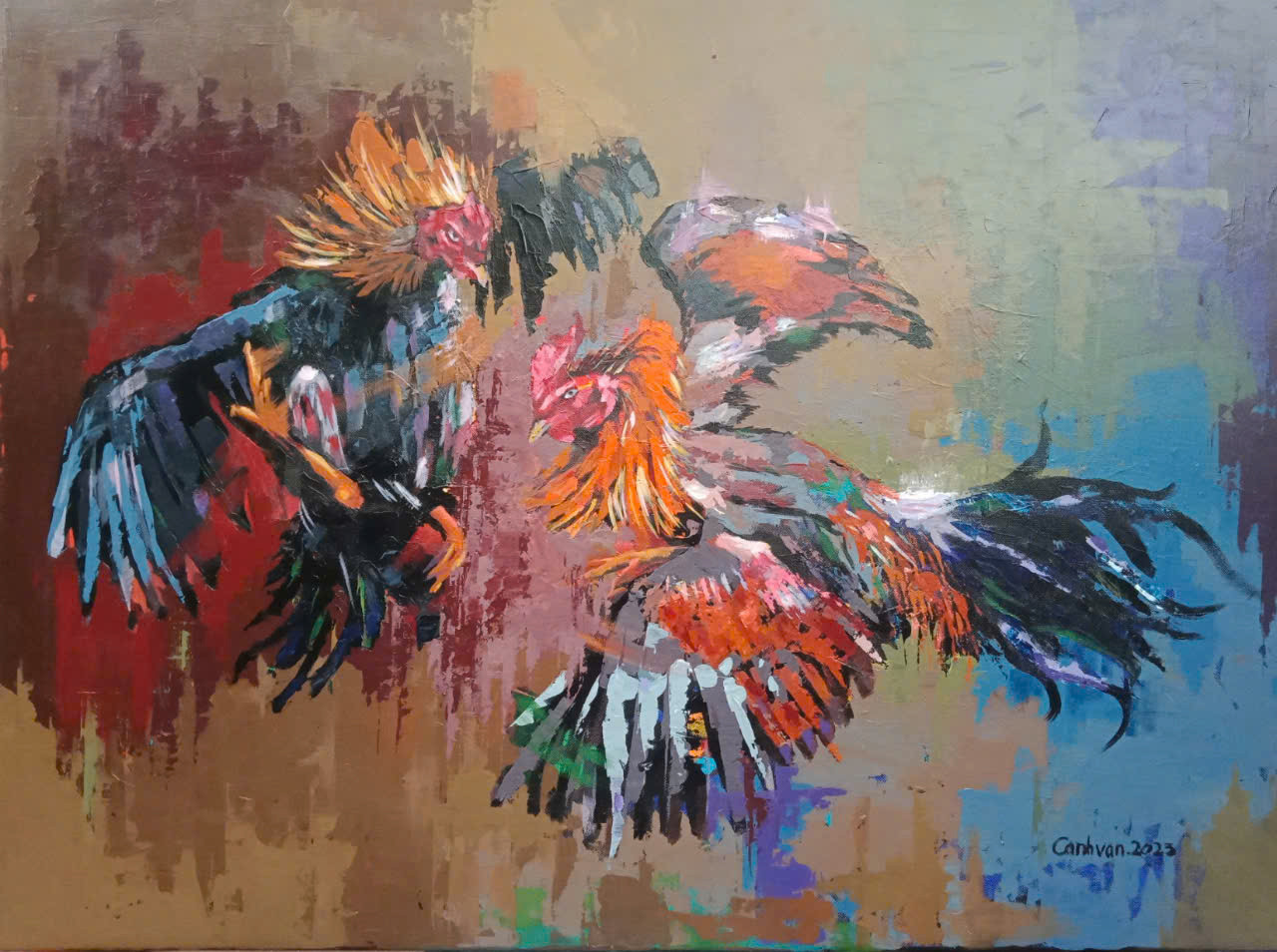 "Gà là biểu tượng của ngũ đức: Văn - Võ - Dũng - Nhân - Tín. Đó là những phẩm chất đáng quý của con người và tôi thấy mình có thể kể nhiều điều ý nghĩa thông qua nó", hoạ sĩ Cảnh Gà chia sẻ.