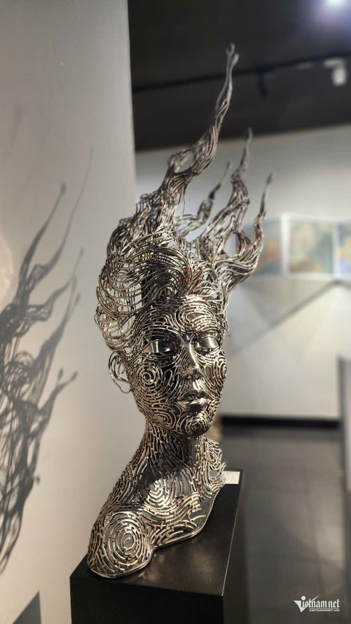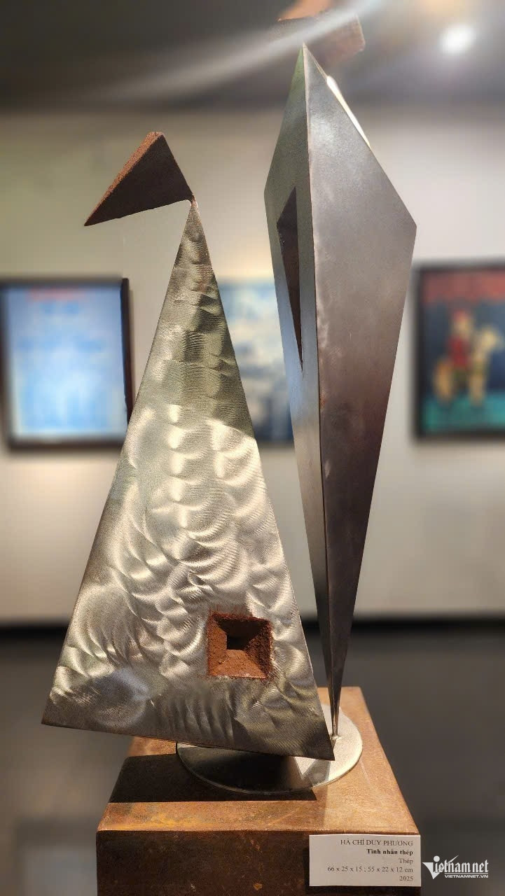 Không dừng ở đó, triển lãm còn mang đến góc nhìn sáng tạo về văn hóa và bản sắc dân tộc qua những tác phẩm như Dấu mốc (Nguyễn Đình Mạnh), Điểm đi lạc (Đào Đức Lộc), Chạy trong mình (Lê Quỳnh Anh), Cờ vây (Tạ Nguyên Cường), Trên mặt nước (Mai Linh Đan)…