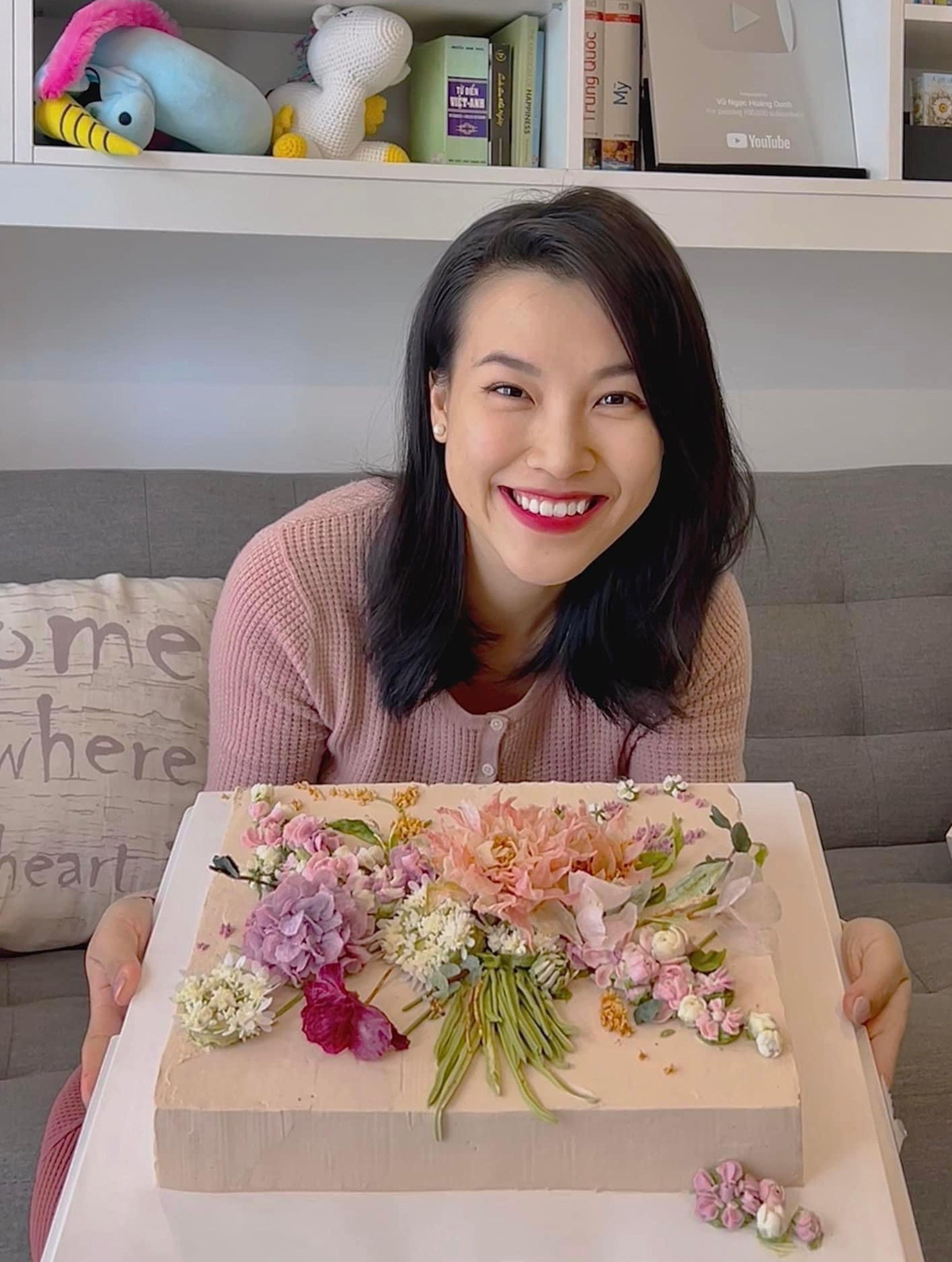 Và rồi, Tín thấy một bức ảnh chụp chiếc bánh kem từ nước ngoài trang trí những bông hoa có thể ăn được mà lại rất đẹp mắt.