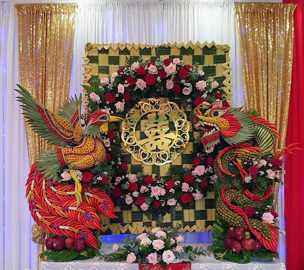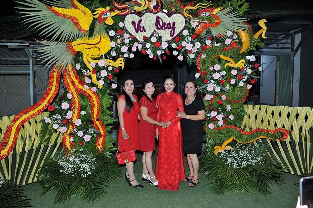 | Cổng cưới rồng phụng được thiết kế "rồng bên tay trái, phụng bên tay phải", theo đúng câu "nam tả nữ hữu". |