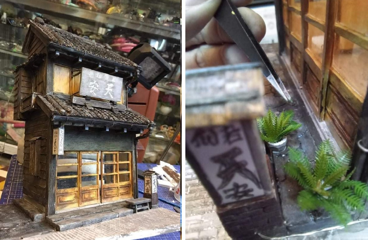 “Trong đợt dịch Covid-19, khi nhìn thấy bức ảnh chụp ngôi nhà tại ngã 3 phố Nguyễn Văn Tố giao Nguyễn Văn Bích (chỗ chợ Hàng Da cũ ở Hà Nội), mình bị cuốn hút bởi thiết kế của ngôi nhà có 3 mặt tiền đó. Vậy là mọi thời gian rảnh trong đợt dịch mình dồn hết tâm huyết vào làm mô hình ngôi nhà này”.