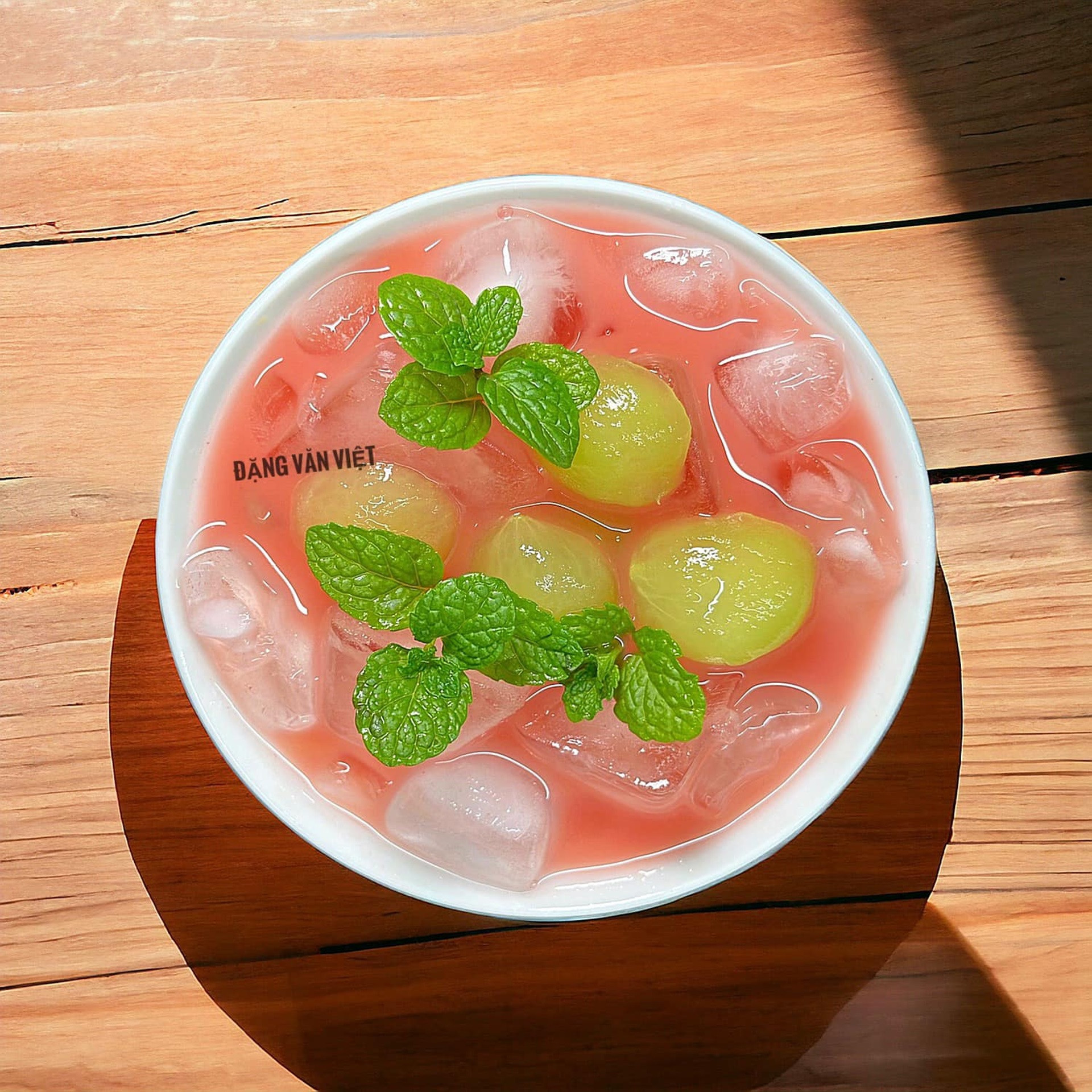 Bước 1: Dưa hấu rửa sạch, cắt lát, cho vào bát lớn, nghiền vài lần cho nát, thêm đá viên.