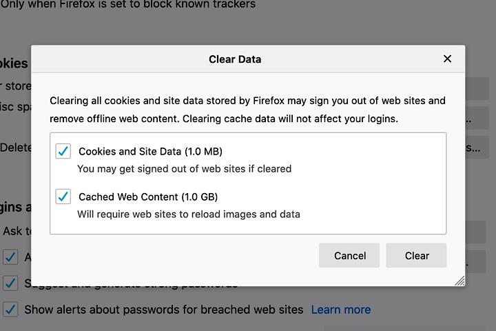 Nếu nguyên nhân không phải các phần mở rộng, thì có thể cache đã bị lỗi. Bạn có thể dễ dàng xoá bỏ những tập tin tạm thời đó và cho trình duyệt một khởi đầu mới - chỉ cần nhớ rằng bạn sẽ phải đăng nhập trở lại đối với mọi website, do đó trước tiên hãy ghi lại mọi mật mã cần thiết.