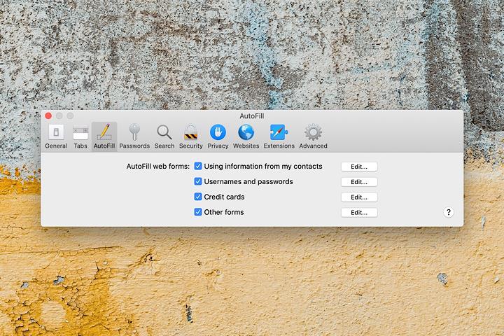 - Safari: Safari trên thanh menu > Preferences > Autofill