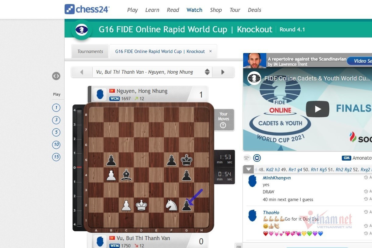 Cả hai kỳ thủ có mặt ở trận chung kết Cup cờ vua trẻ thế giới (online) năm 2021 lứa tuổi U16 nữ đều là người Việt Nam.