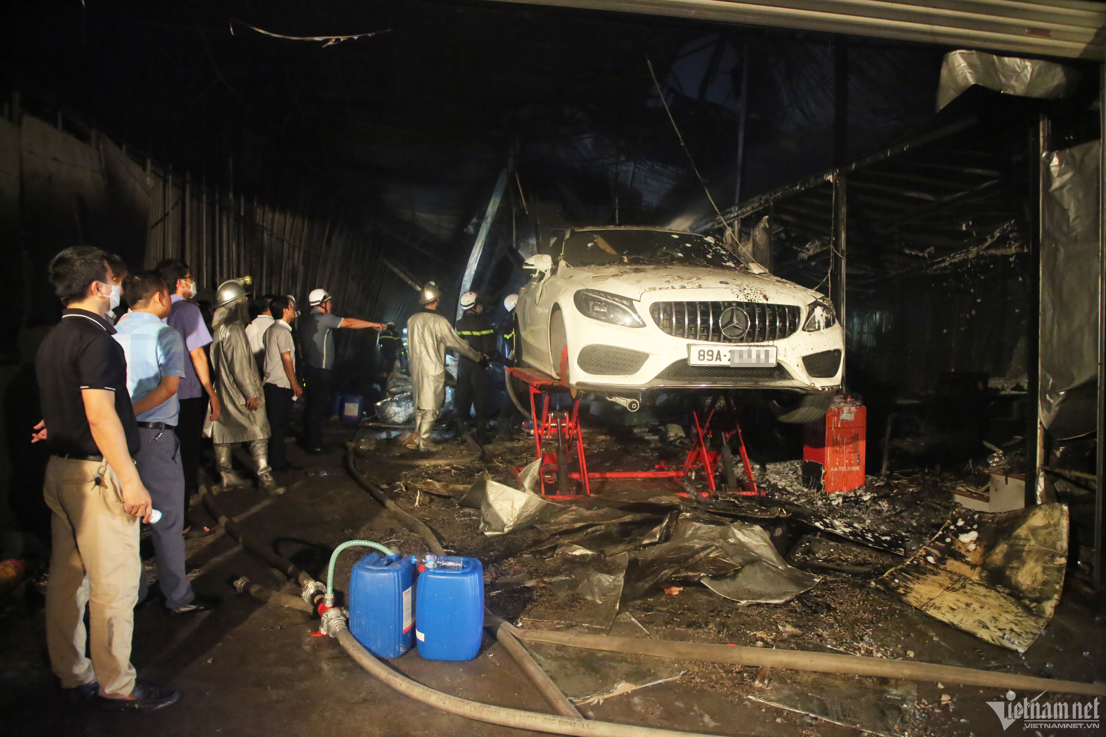 Đám cháy không gây thiệt hại về người nhưng đã thiêu rụi hoàn toàn 8 ô tô và làm cháy một phần ô tô nhãn hiệu Mercedes.