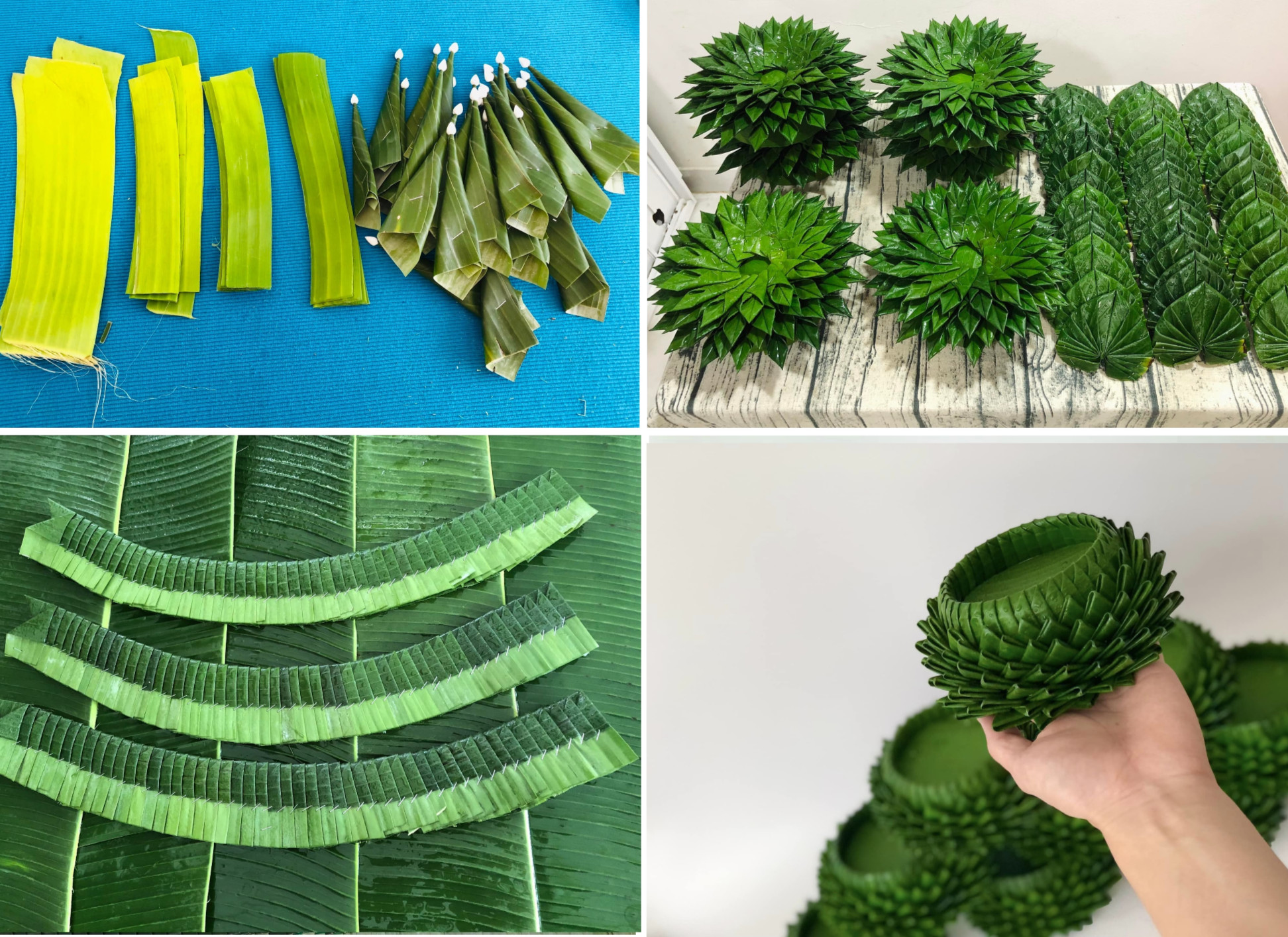Các công đoạn tỉ mỉ từ chọn sóng và xếp lá, gấp cắt và đính kết lại đều đòi hỏi đôi tay khéo léo và tỉ mỉ của người làm.
