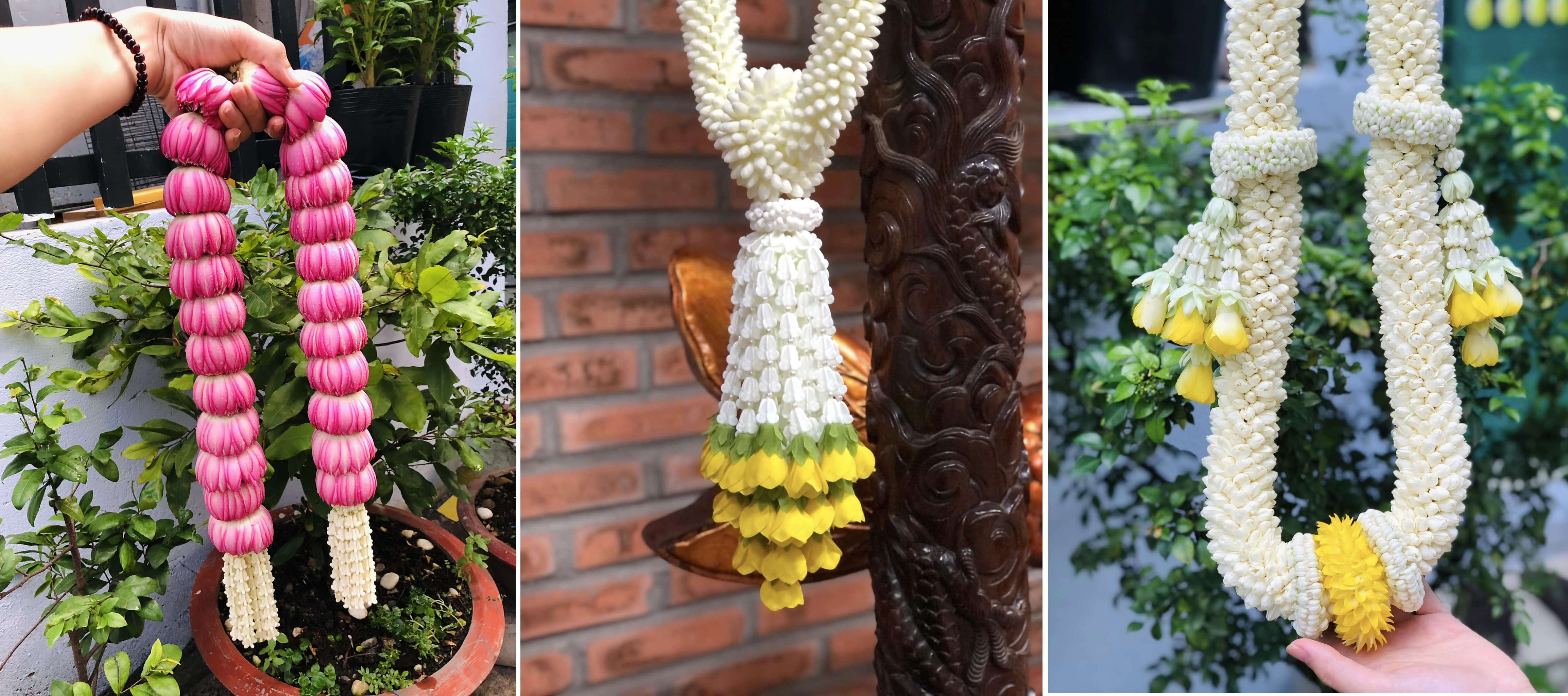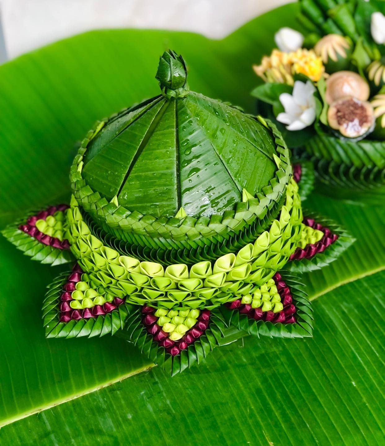 Những đài kết từ lá chuối hay cánh hoa tươi được dùng đựng thức ăn, bánh trái, hoa quả, các vật lễ như trầu cau...