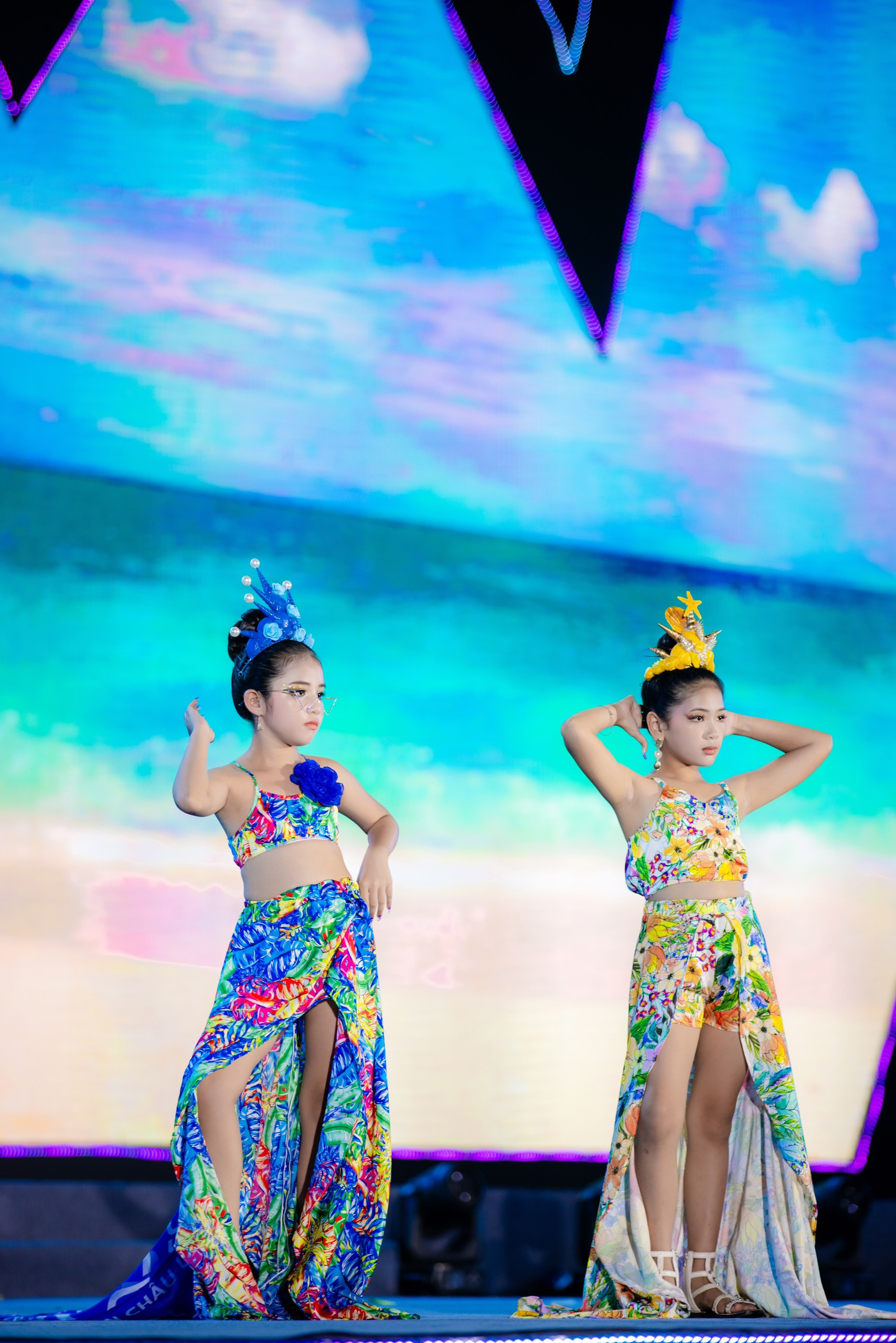 Xuất hiện ở vị trí vedette, Á hậu hoàn vũ Hoàng Thùy vô cùng gợi cảm bên Quán quân và Á quân 'Tỏa sáng thiên thần nhí' Nguyễn Minh Cường, Nguyễn Minh Châu.