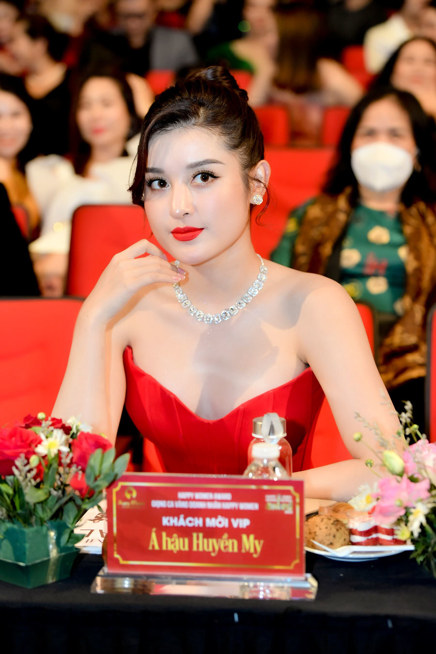| Chương trình Giọng ca doanh nhân Happy Women diễn ra tại Nhà hát kịch Hà Nội tối 30/3 với sự góp mặt của 16 tiết mục biểu diễn xuất sắc nhất được Ban giám khảo lựa chọn. Á hậu Huyền My xuất hiện gây sự chú ý khi diện váy đỏ vai trần gợi cảm. |