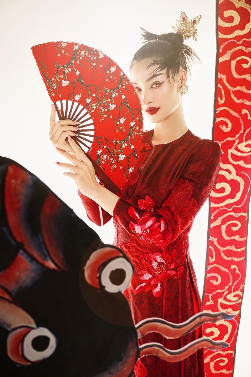Kiều Loan lựa chọn đỏ và vàng làm màu sắc chủ đạo trong bộ ảnh Tết. Cô cho biết, đây cũng chính là gam màu mà người Việt Nam thường chọn để cầu cho một năm mới tươi vui, may mắn.