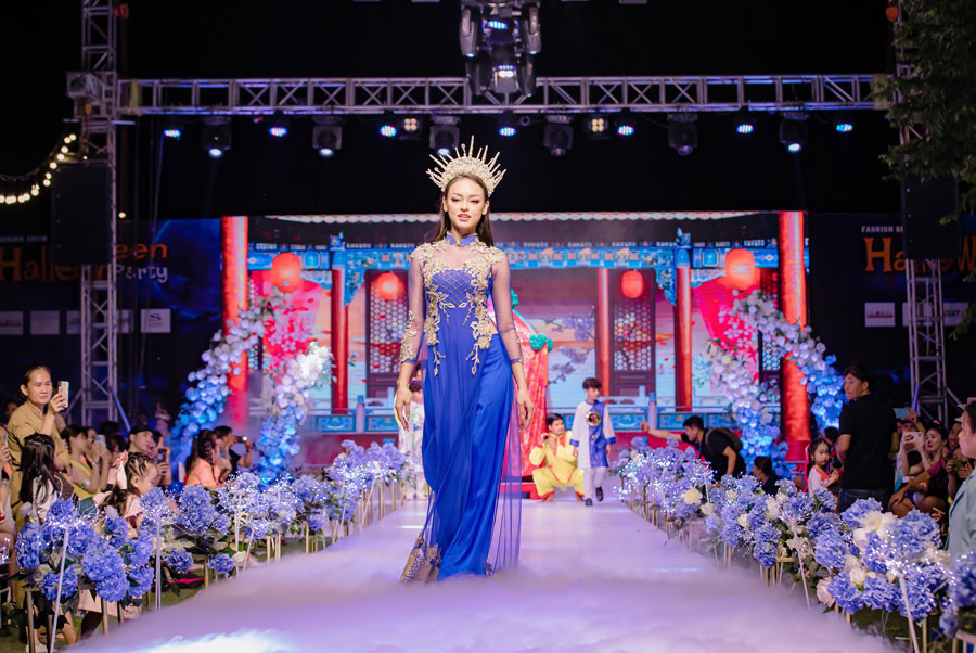 Trong đêm thời trang Halloween Party diễn ra tại TP.HCM, nhà thiết kế Ruby Trần giới thiệu tới giới mộ điệu cùng lúc 4 bộ sưu tập với 150 thiết kế mới dành cho trẻ em: Nàng tiên hoa, Fairies, Dark Angel và Nàng thơ. Á hậu Mai Ngô được rước kiệu lên sân khấu để trình diễn thời trang.Khác với hình ảnh cá tính thường thấy, Mai Ngô duyên dáng trong tà áo dài xanh. Điểm nhấn của bộ trang phục là phần thêu nổi trên nền vải mềm mại, giúp nàng hậu 9X trở nên duyên dáng hơn trên sân khấu. Có thể thấy, sau khi thành danh từ một cuộc thi nhan sắc, cái tên Mai Ngô đang được nhiều nhà thiết kế ưu ái “chọn mặt gửi vàng” cho những vai trò quan trọng của show diễn. Đồng hành cùng các mẫu nhí là sự xuất hiện của dàn người đẹp như Hoa hậu Hoàn vũ Việt Nam 2019 - Nguyễn Trần Khánh Vân.Hoa hậu Khánh Vân được lựa chọn để đảm nhận nhiệm vụ kết màn cho bộ sưu tập chủ đề Halloween. Nàng hậu sinh năm 1995 diện bộ cánh màu đen huyền bí, kết hợp cùng chiếc nón phụ kiện to, họa tiết cách điệu. Bằng kinh nghiệm nhiều năm trên sàn diễn, Khánh Vân đã lột tả hết những điều mà nhà thiết kế Ruby Trần muốn gửi gắm, thông qua những bước catwalk tự tin và thần thái cuốn hút.Vốn là một gương mặt quen thuộc của làng mẫu, Á hậu Hoàng Thùy diện chiếc váy hoa với chất liệu ren mỏng, hóa thân thành nàng công chúa đầy ngọt ngào.Kinh nghiệm trình diễn giúp nàng hậu quê Thanh Hóa làm chủ được sàn diễn, mang đến một tiết mục ấn tượng ở vai trò kết màn.Thông qua show thời trang đặc biệt này, Ruby Trần chia sẻ: “Tôi muốn tạo sân để các bé có thể thỏa niềm đam mê với thời trang. Trên sàn diễn, các bé sẽ được hóa thân thành công chúa, nàng tiên, được diện trên người tà áo dài truyền thống… Ở vai trò là nhà thiết kế thời trang nhí, tôi muốn tạo cho các con một niềm vui khôn tả khi được diện những bộ trang phục mới lạ. Và những thiết kế của bộ sưu tập Halloween là câu trả lời cho điều này”.