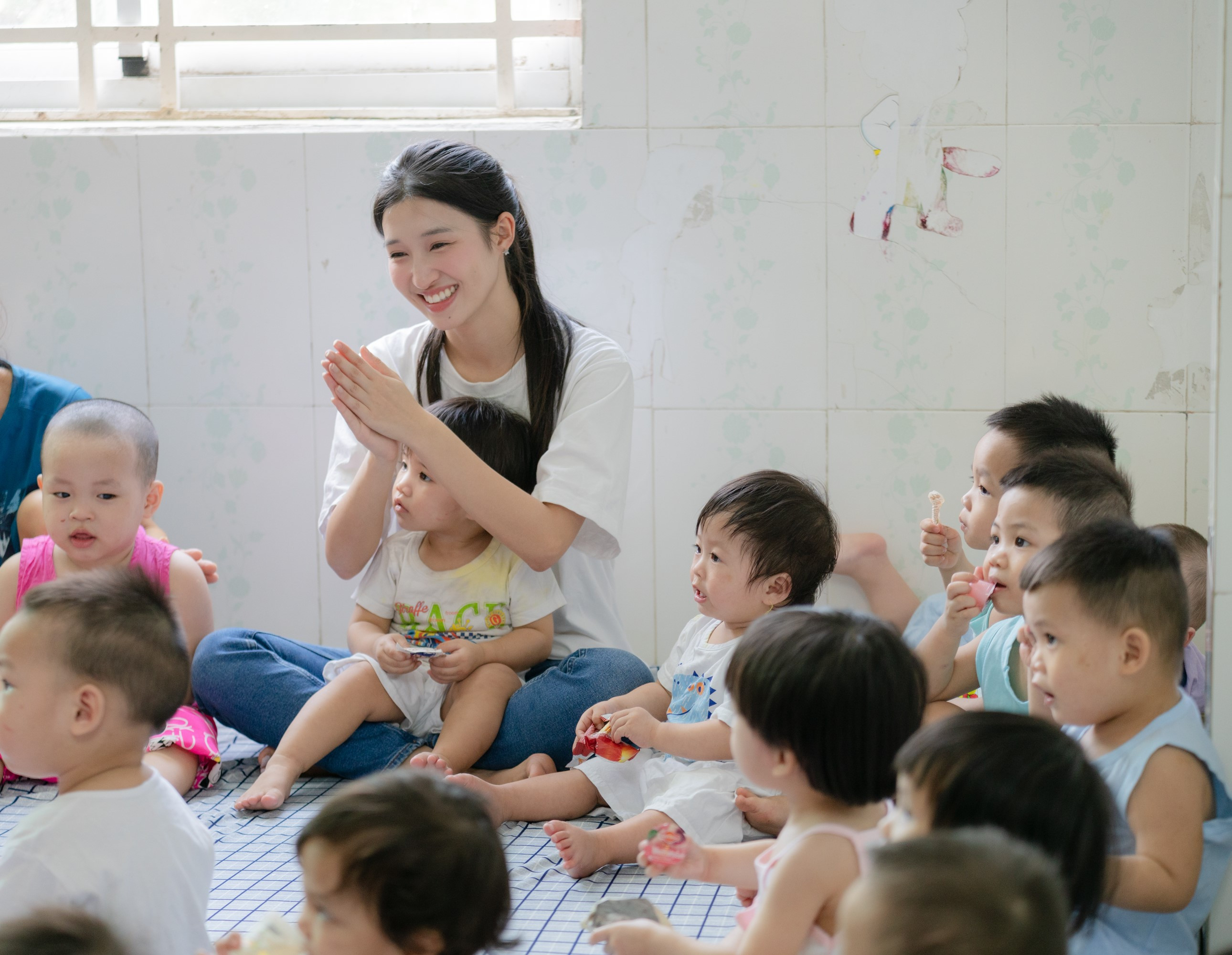 Luôn tạo được cảm tình với vẻ đẹp trong sáng, không chỉ với các fan hâm mộ, Phương Nhi còn được các em nhỏ yêu quý. Lần này đến với Mái ấm Hoa Hồng, nàng hậu sinh năm 2002 rất ân cần ôm ấp từng em nhỏ, khéo léo khi chơi cùng và chăm sóc các em. Đáp lại tình cảm đó, từ khi bước vào, nàng hậu đã được các em vây quanh, quấn quýt suốt buổi ghé thăm.