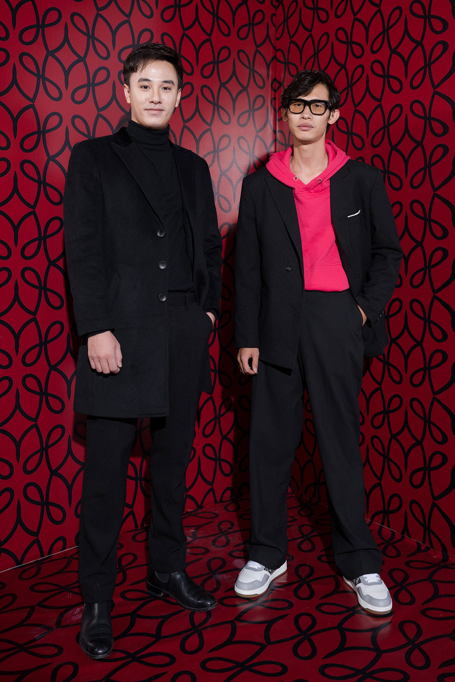Đan Lê chọn trang phục trắng cá tính. Trong khi đó Vũ Việt Hoa mặc áo vest hoa rực rỡ, ấn tượng.