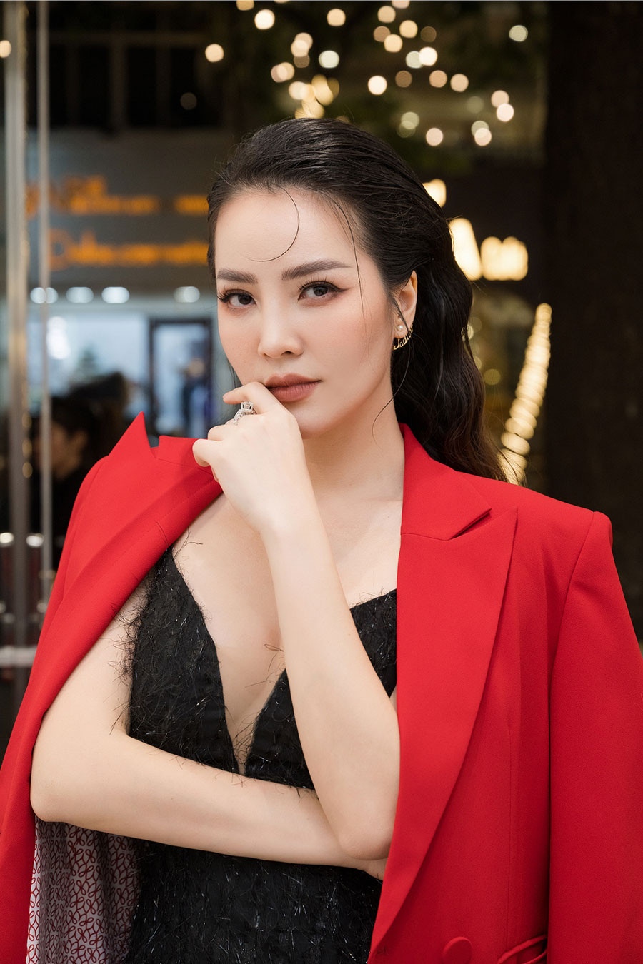 Lã Thanh Huyền mặc blazer xẻ ngực sâu, khoe vẻ gợi cảm giữa trời đông. Diễn viên Phan Minh Huyền chọn thiết kế màu đen quyến rũ. Khi xây dựng phong cách sang chảnh cho nhân vật Vân Trang trong bộ phim gây "sốt" Thương ngày nắng về, Phan Minh Huyền cũng nhờ cậy đến sự giúp đỡ từ NTK Nhung Reina.