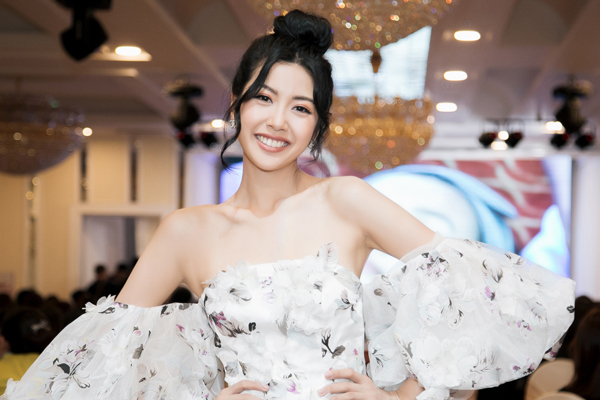 Á hậu Quốc tế 2015 Thúy Vân có mặt tại Đài Loan để làm giám khảo cho một cuộc thi nhan sắc. Cô gây chú ý bởi nhan sắc tươi trẻ và chiếc váy trễ nải khoe vai trần gợi cảm.