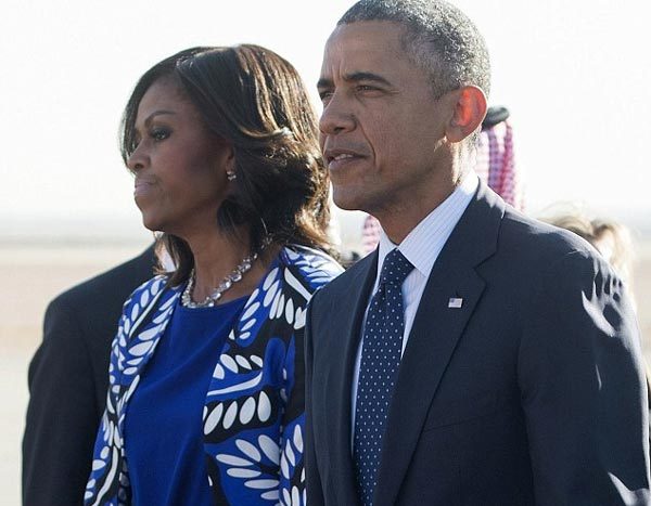 Đệ nhất phu nhân Mỹ trông có vẻ không hài lòng khi bà phải cắt ngắn lịch trình ở Ấn Độ để đi cùng chồng tới Ảrập Xêút, nơi phụ nữ thậm chí không được phép lái xe.