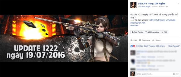 Đối với bản cập nhật phụ hàng tháng (Đột Kích có 2 bản cập nhật: chính và phụ mỗi tháng), thông thường trang chủ http://cf.vtcgame.vn/ sẽ đưa ra thông báo từ 1-2 ngày trước update. Tuy nhiên, chỉ cách đây vài phút, có vẻ admin Fanpage Đột Kích Trong tầm ngắm (https://www.facebook.com/cfvietnamvtc/) đã hơi “lanh chanh” khi tiến hành thay cover khẳng định ngày update tiếp theo sẽ là 19/7/2016, tức còn gần 4 ngày nữa.