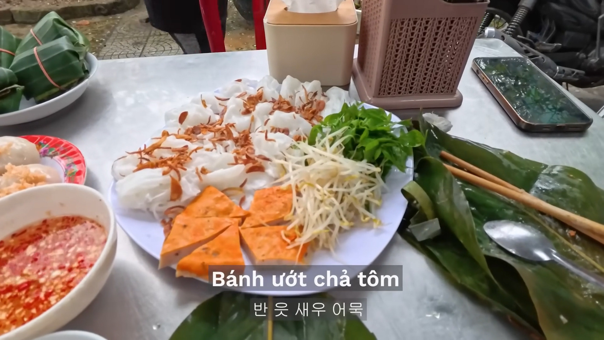 Họ tới một quán ăn nổi tiếng trên đường Nguyễn Bỉnh Khiêm để thưởng thức bánh Huế. Theo lời giới thiệu của nhân viên, họ gọi combo 7 loại bánh, giá 330.000 đồng gồm bánh bèo, bánh bột lọc, bánh ướt chả tôm, bánh nậm, ram ít, nem lụi, chả tôm.