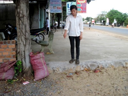 Chị Thoa đau buồn chỉ vị trí gốc cây cháu Kh. nhặt và ăn nhầm viên bả chó vì nghĩ là kẹo mút |