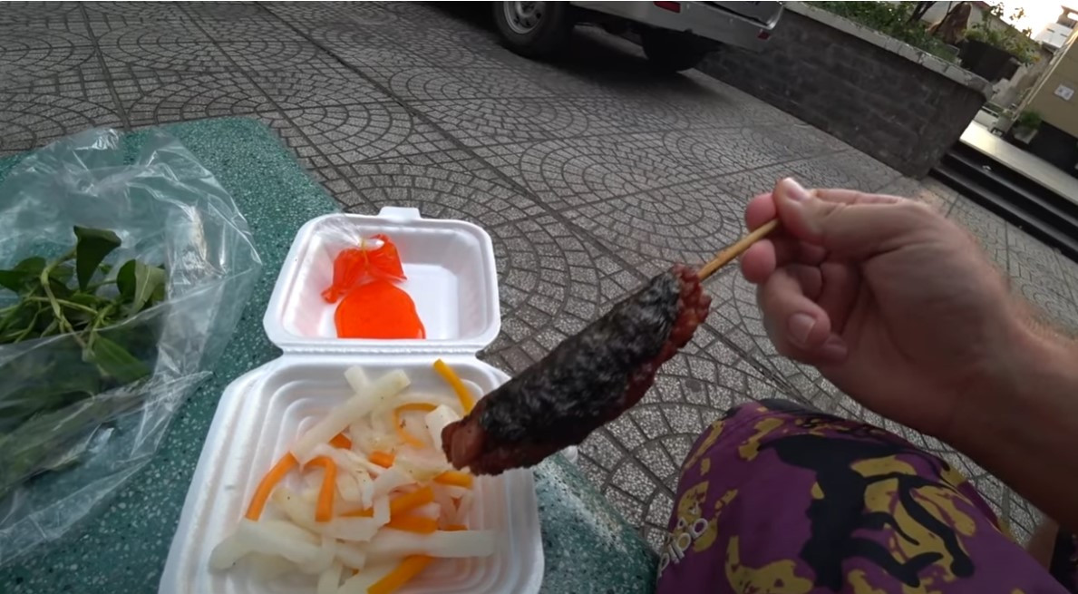 Sau khoảng thời gian ngắn dừng chân nghỉ ngơi, giải nhiệt bằng cốc nước mía mát lạnh, Ellis và bạn gái quyết định dùng số tiền thừa còn lại để mua một ổ bánh mì thập cẩm giá 20.000 đồng, suất xôi mặn đầy đủ đồ ăn kèm 20.000 đồng và một chiếc nem nướng giá 10.000 đồng.