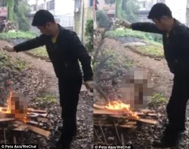 Phẫn nộ cảnh nướng sống chó trên lửa để ăn thịt ở Trung Quốc