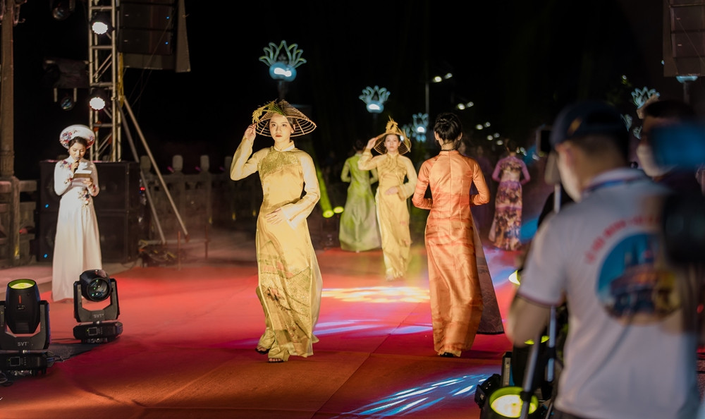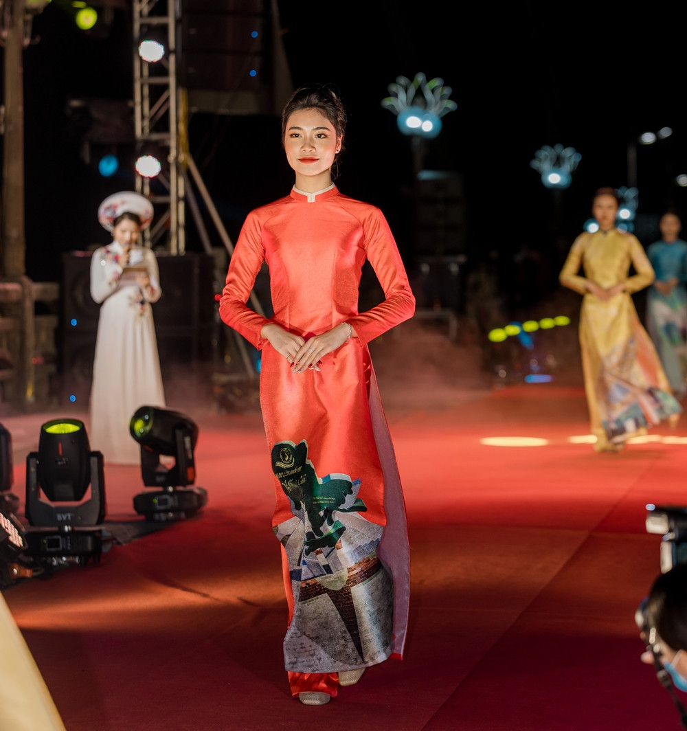 Với 30 bộ áo dài lộng lẫy giới thiệu những danh lam thắng cảnh nổi tiếng của mảnh đất biên cương Móng Cái – bộ sưu tập áo dài mang tên 'Dấu ấn nơi địa đầu Tổ quốc' như một bức tranh tuyệt đẹp trong đêm Lễ hội Móng Cái chào hè 2022 vừa diễn ra tại cây cầu Ka Long huyền thoại tối 30/4/2022.Lễ hội Móng Cái chào hè 2022 do Thành ủy - UBND Thành phố Móng Cái tổ chức nhằm quảng bá du lịch.Ngoài các tiết mục văn nghệ của các ca sĩ, bộ sưu tập áo dài 'Dấu ấn địa đầu Tổ quốc' do NTK Anh Thư thực hiện trở thành điểm nhấn vô cùng ấn tượng trong đêm hội.Sự xuất hiện của 8 cô gái “mũ nồi xanh” - những các nữ sĩ quan, chiến sĩ thuộc lực lượng tham gia gìn giữ hoà bình của Việt Nam là điểm nhấn gây chú ý trong chương trình. Trước khi lên đường đi làm nhiệm vụ tình nguyện tại phái bộ Liên hợp quốc ở Nam Su dan, đoàn nữ sĩ quan, chiến sĩ bệnh viện dã chiến cấp 2 số 4 thuộc lực lượng gìn giữ hoà bình đã chọn Móng Cái là nơi lưu giữ kỷ niệm trước khi xa Tổ quốc để thực hiện nghĩa vụ với quốc tế .