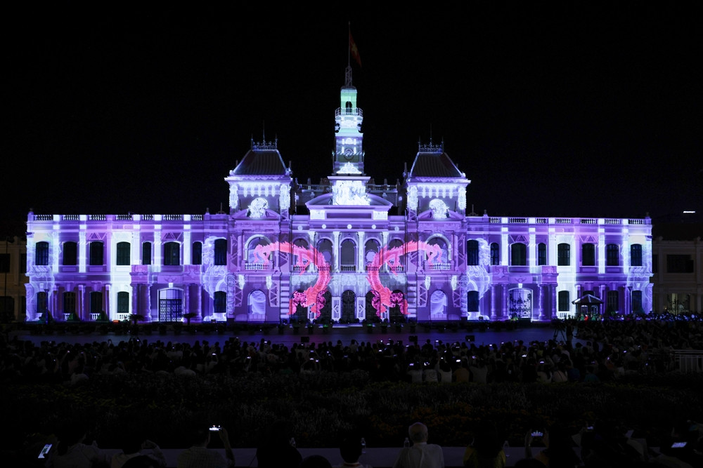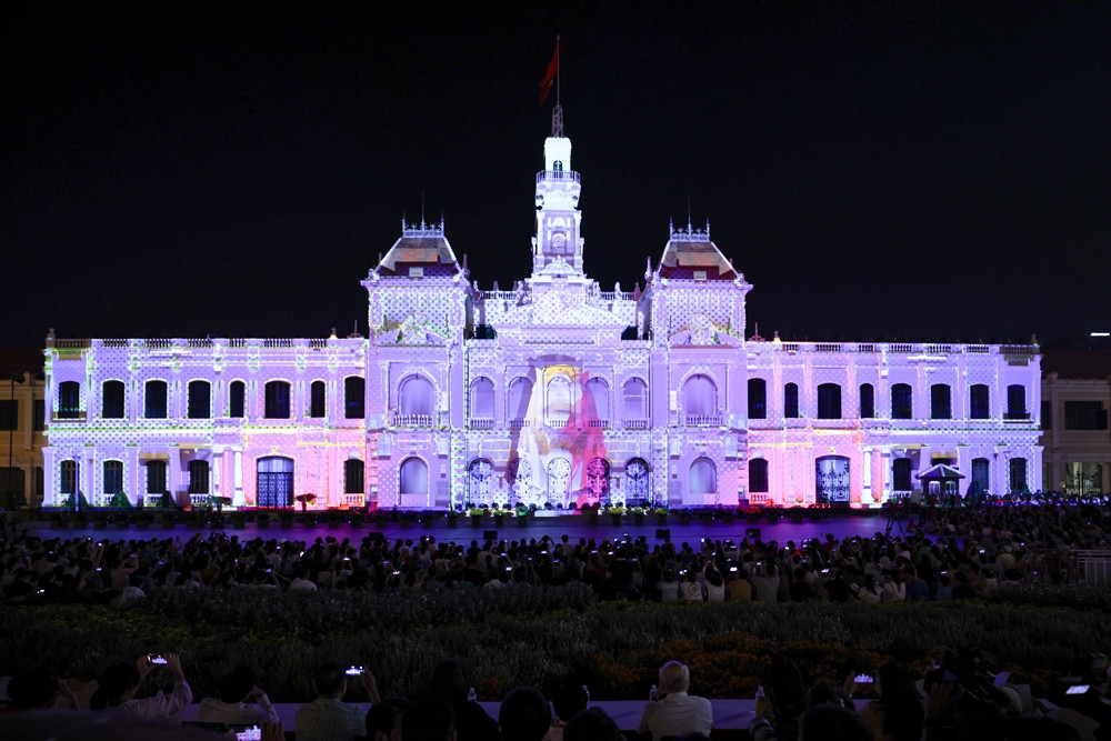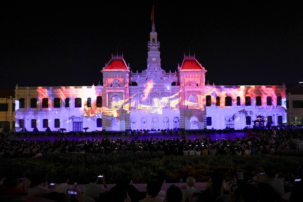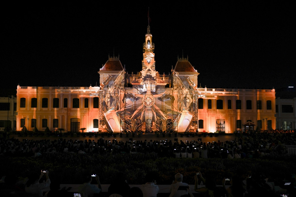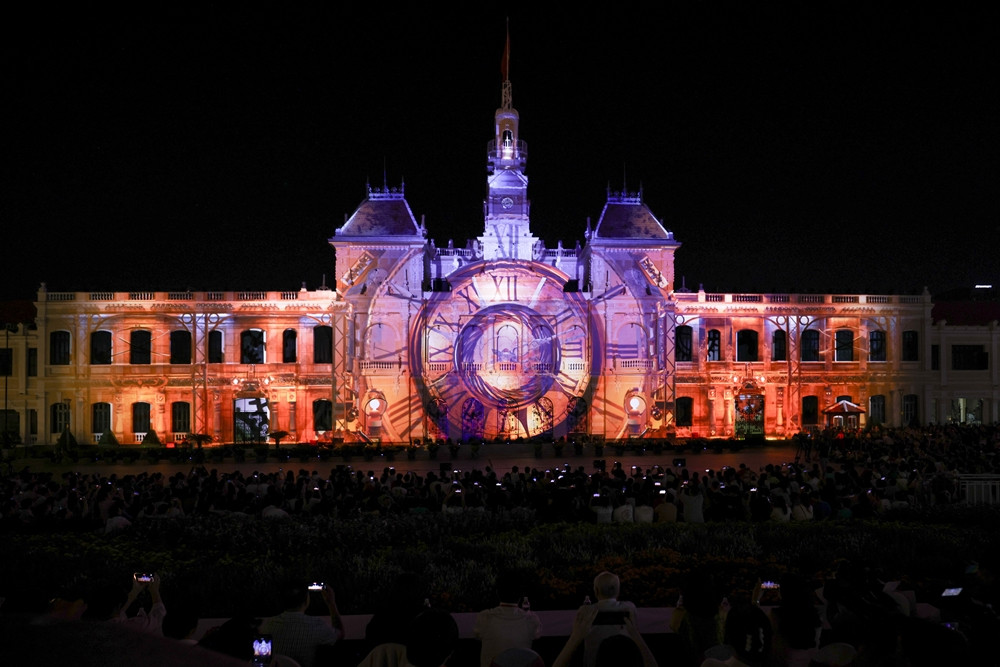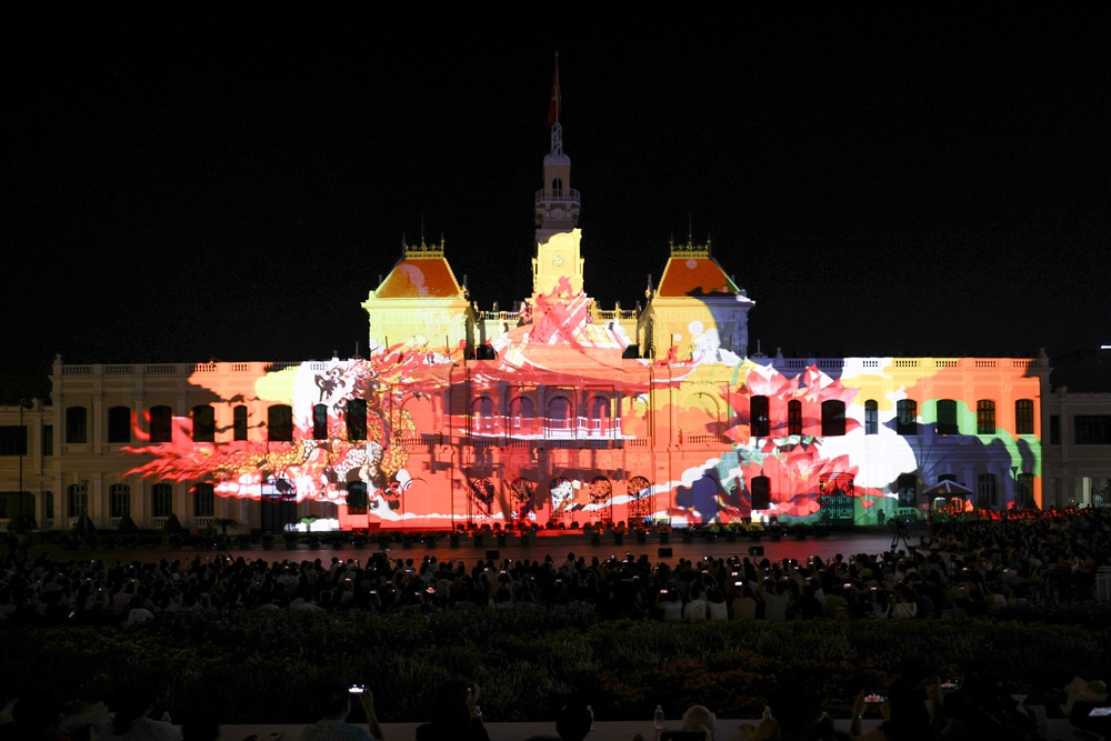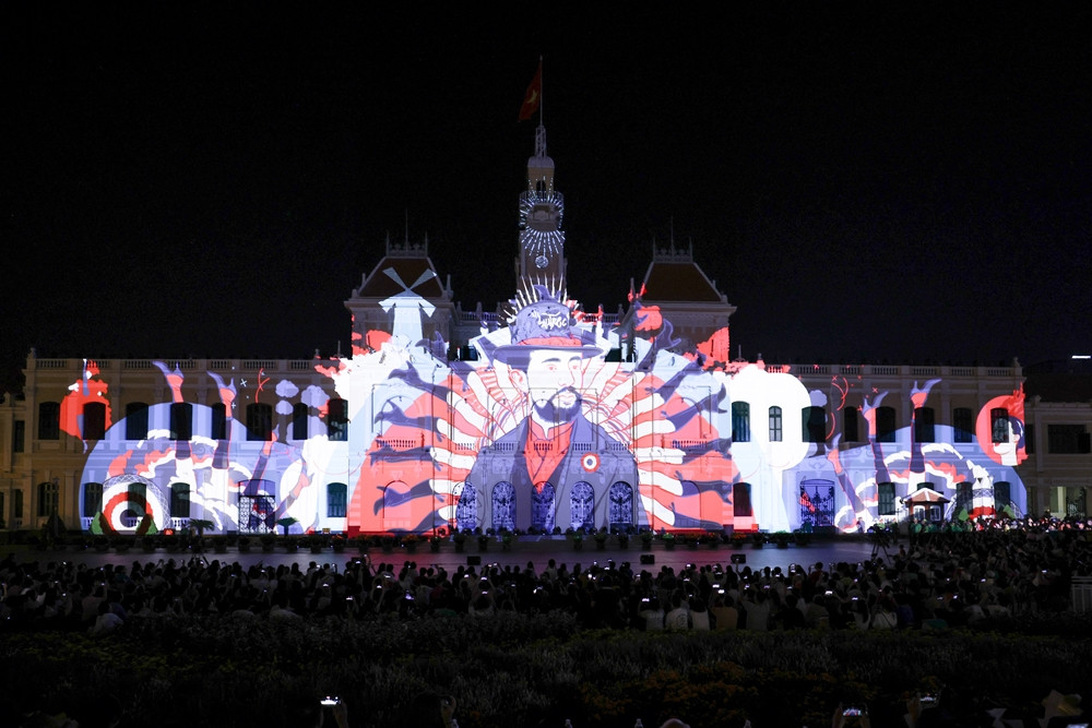 Bốn đội nghệ thuật của Singapore, Bỉ, Pháp và Việt Nam đã biến tòa nhà lịch sử thành một "bức vải" khổng lồ, nơi công nghệ hiện đại và cảm xúc nghệ thuật kết hợp trong lễ khai mạc chuỗi hoạt động chủ đề Sắc màu Thành phố Bác.