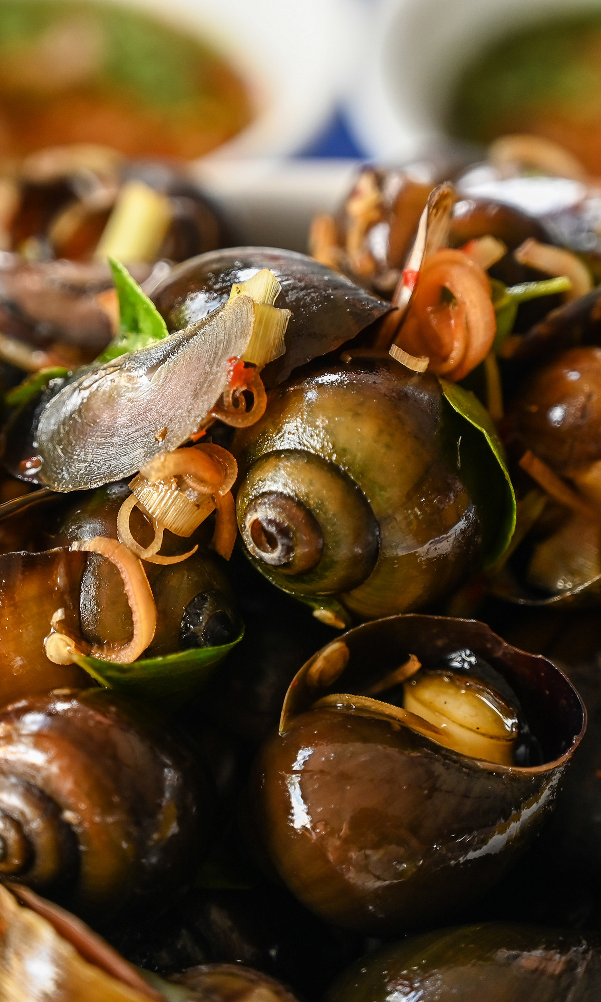 Nhắc đến đặc sản đại diện cho phong cách ẩm thực đường phố Hải Phòng, không thể bỏ quên món ốc. Một số loại ốc nổi tiếng mà nhóm đã kịp thưởng thức là ốc hương, ốc đỏ môi, ốc móng tay, ốc đá…
