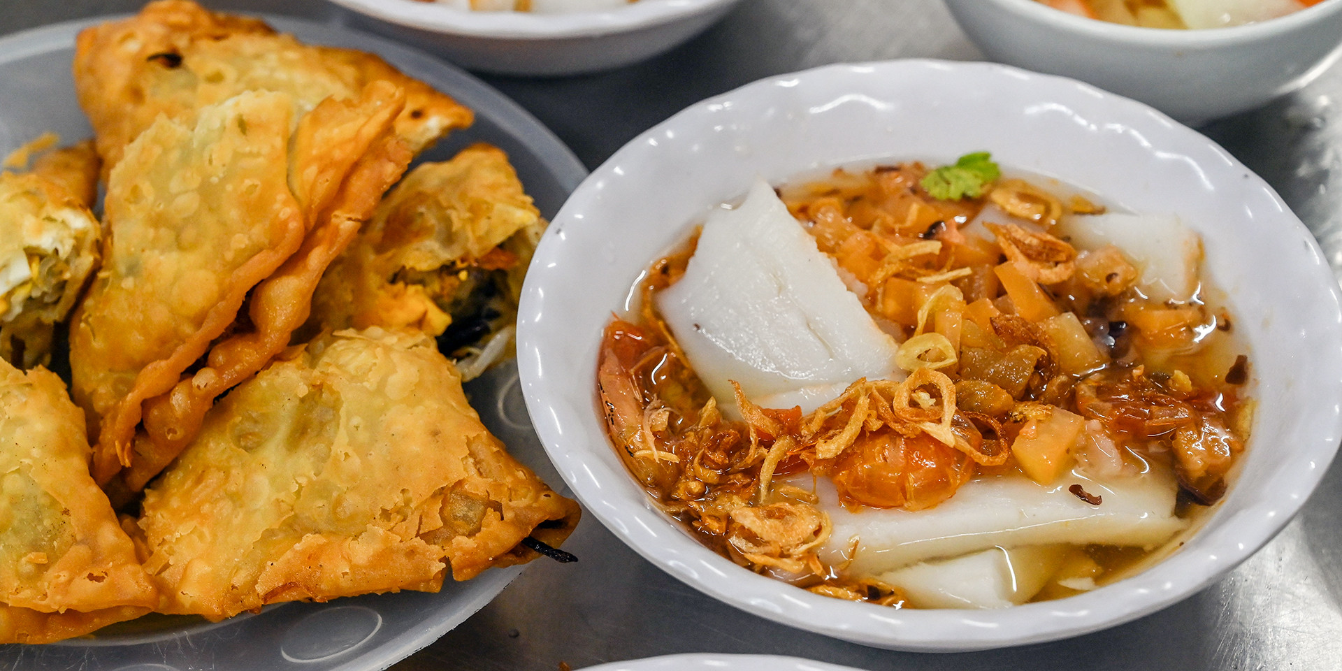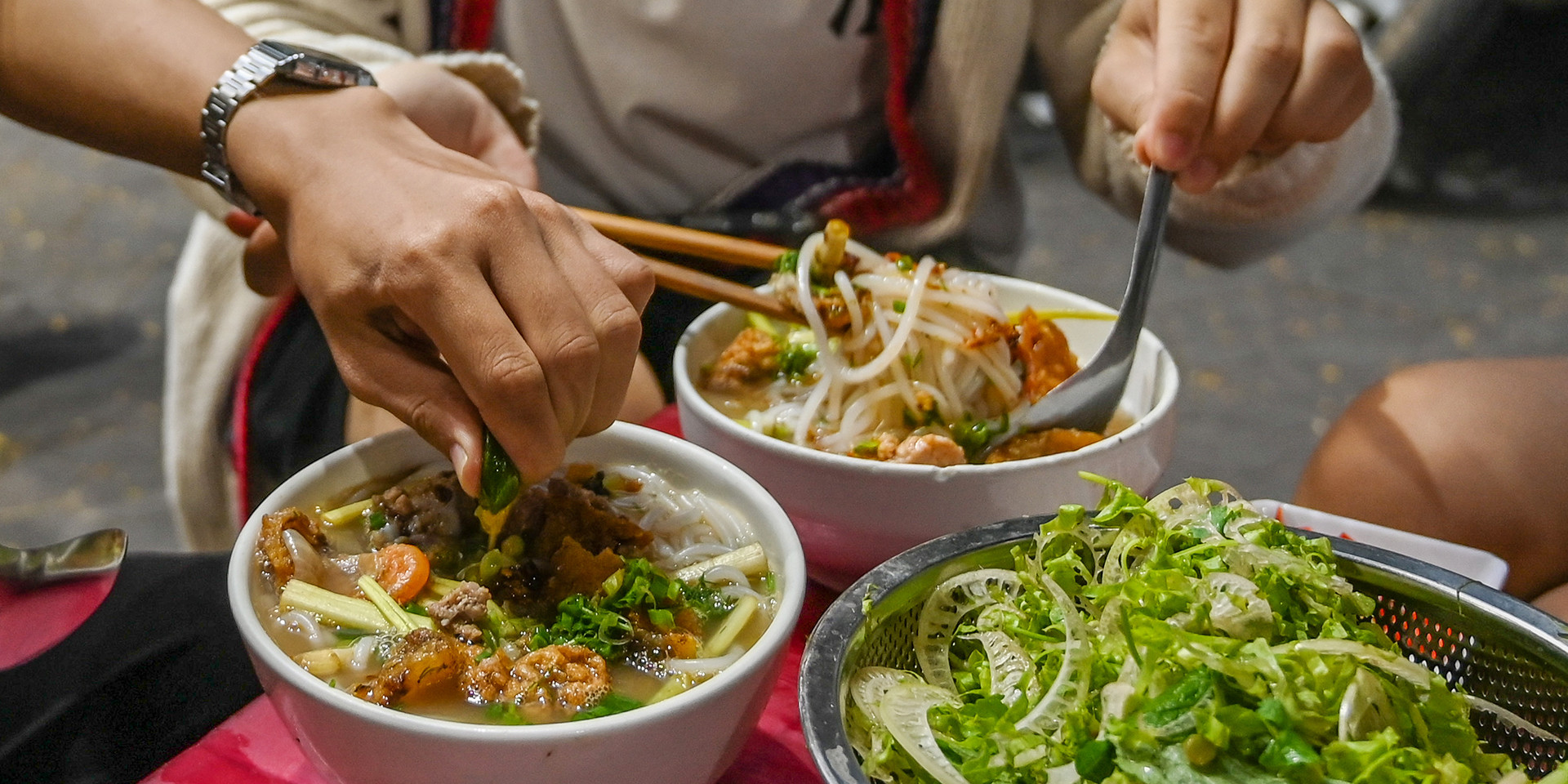 Nhóm di chuyển tới chợ Cố Đạo để nạp năng lượng bằng món bánh đa cua, đặc sản đất cảng mà nhiều người thích dùng và là một trong những niềm tự hào ẩm thực của người dân thành phố hoa phượng đỏ.
