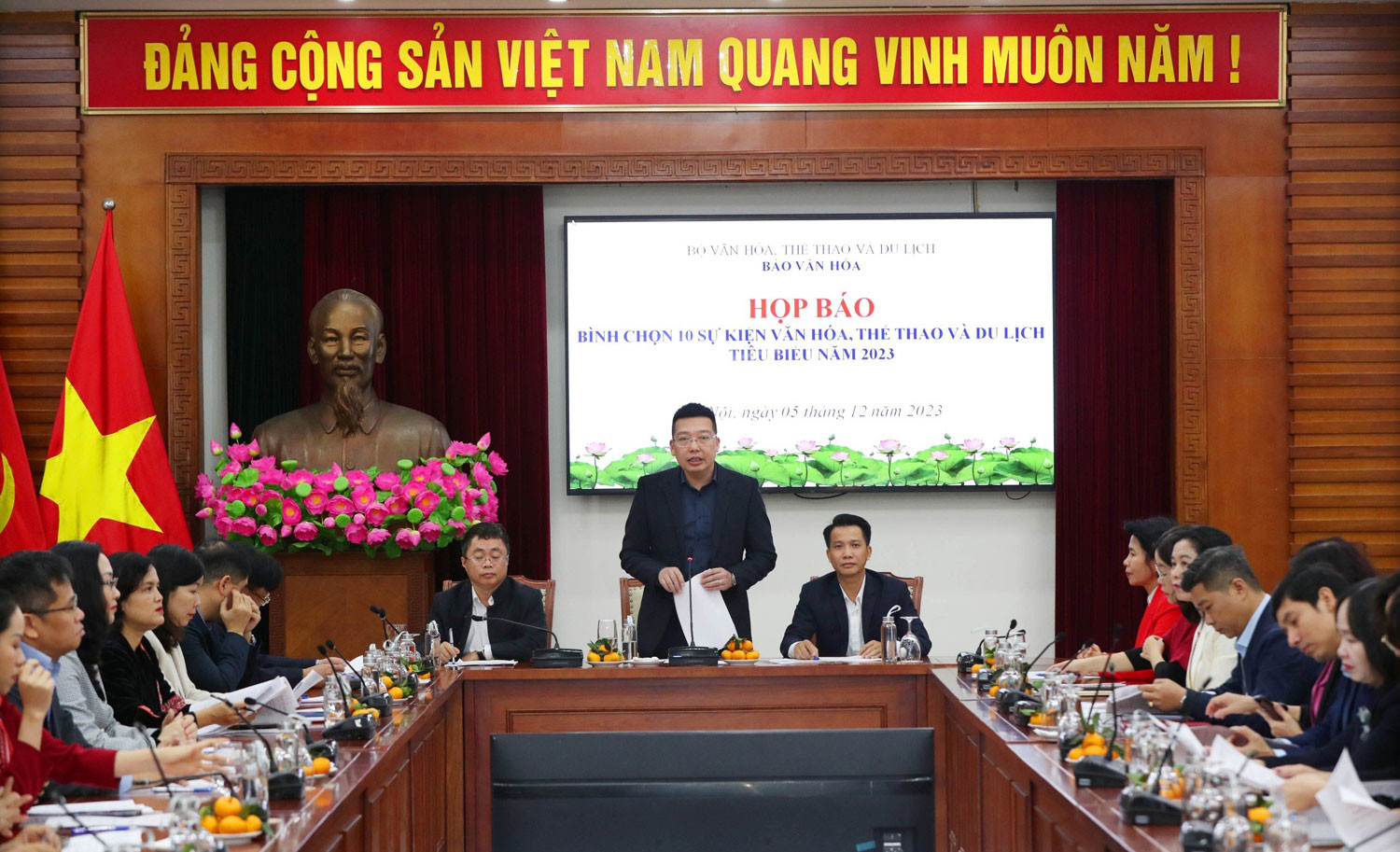 Từ kết quả này, BTC đã tổng hợp, lựa chọn 15 sự kiện, báo cáo lãnh đạo Bộ để tổ chức bình chọn 10 sự kiện văn hóa, thể thao và du lịch tiêu biểu năm 2023 với sự tham gia của đại diện phóng viên các cơ quan thông tấn, báo chí Trung ương và địa phương.
