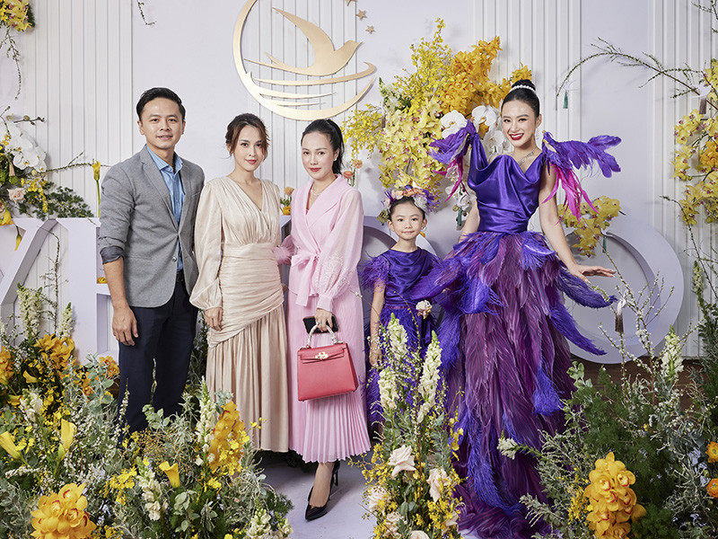 Bộ váy gây ấn tượng vì ở phần vai đính hai chú chim giả gắn động cơ mini. Khi bật công tắc, hai chú chim có thể vỗ cánh, trông như chim thật đang bay.Angela Phương Trinh chia sẻ đang chủ động xả cơ, giảm cường độ luyện tập để có vóc dáng mảnh mai, mềm mại, chuẩn bị tái xuất màn ảnh.Nữ diễn viên hiện tại bận rộn với việc kinh doanh nhưng vẫn đam mê nghệ thuật.Bé Tép - con nuôi của nữ diễn viên - mặc chiếc váy tím xinh xắn. Cô chia sẻ bé có năng khiếu nghệ thuật nên dự định hỗ trợ con gái nối nghiệp mình trong tương lai.Vợ chồng Tú Vi - Văn Anh cũng góp mặt trong sự kiện.