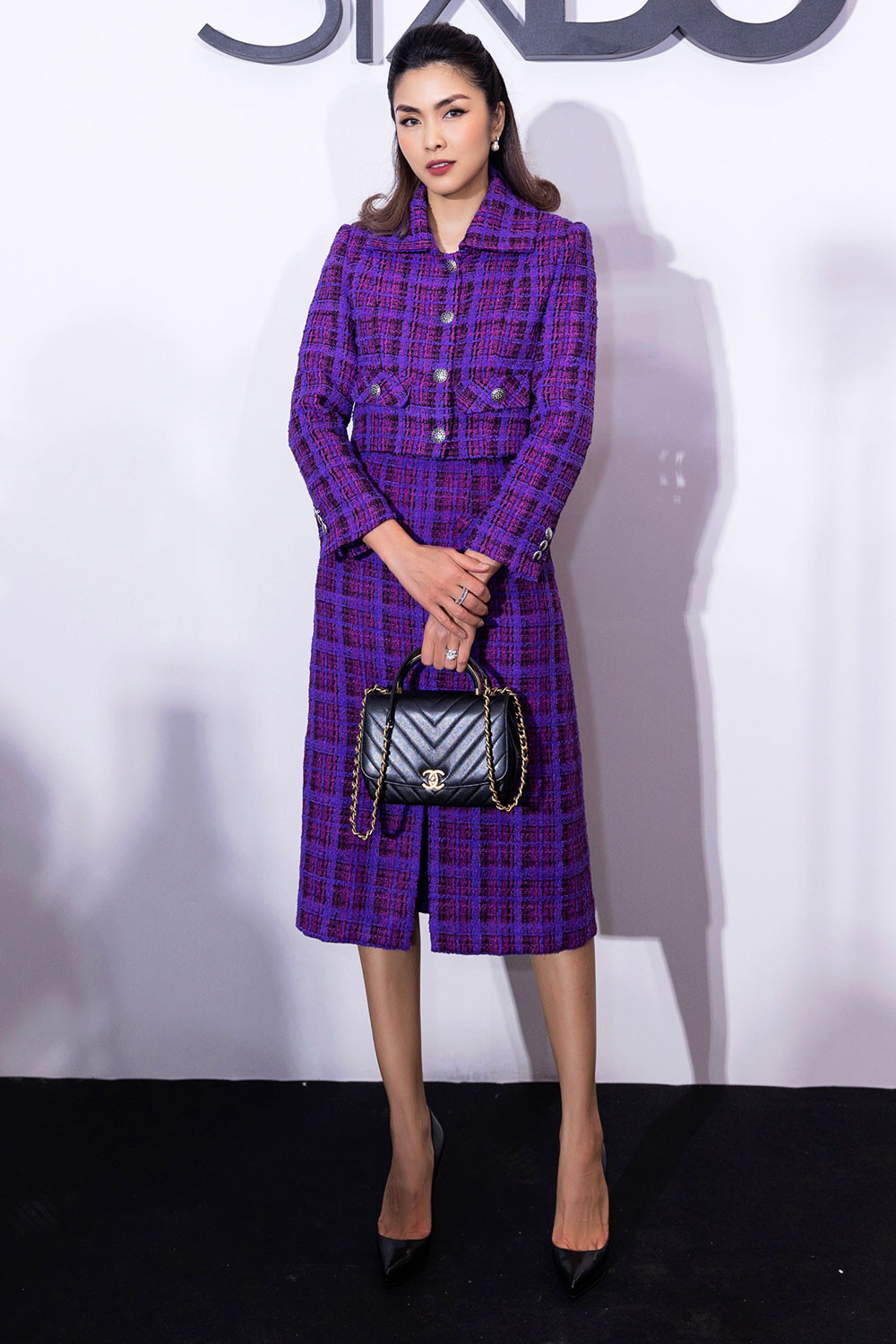 Xuất hiện tại show diễn của NTK Đỗ Mạnh Cường tối 12/11, 'ngọc nữ” màn ảnh Việt Tăng Thanh Hà có vẻ ngoài rạng rỡ, vợ chồng Ngô Thanh Vân - Huy Trần xuất hiện trẻ trung, thanh lịch. Trong khi đó, Diễm My sang trọng trong bộ cánh vải tweed đỏ, MC Thanh Thanh Huyền quyến rũ trong thiết kế váy ngắn với điểm nhấn hoa hồng phủ gần hết thân váy.