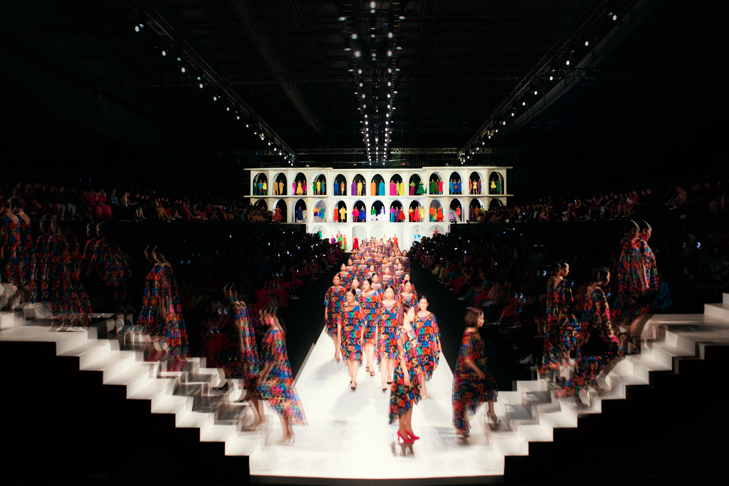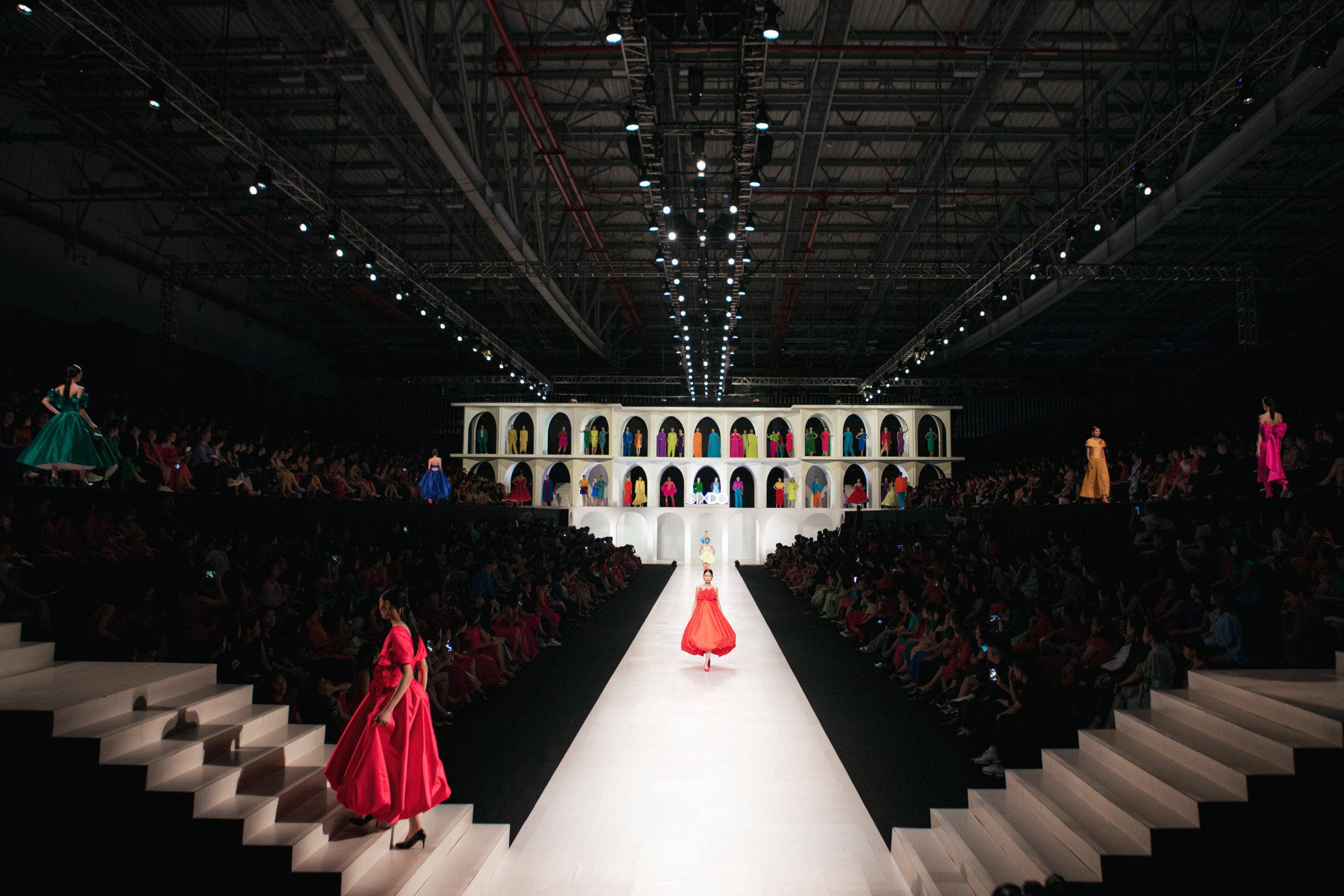 Sàn diễn được xây dựng quy mô, hoành tráng, chia làm 3 đường catwalk. Sân khấu được bố trí thành 4 khu vực đối xứng, ở giữa 3 đường di chuyển này tạo điều kiện cho khán giả được quan sát các thiết kế, những màn trình diễn tiệm cận nhất. Tuy nhiên, việc bố trí sàn diễn với các bậc thang cũng tạo ra thử thách cho các người mẫu khi trình diễn, đặc biệt với các người mẫu không chuyên, mẫu nhí.