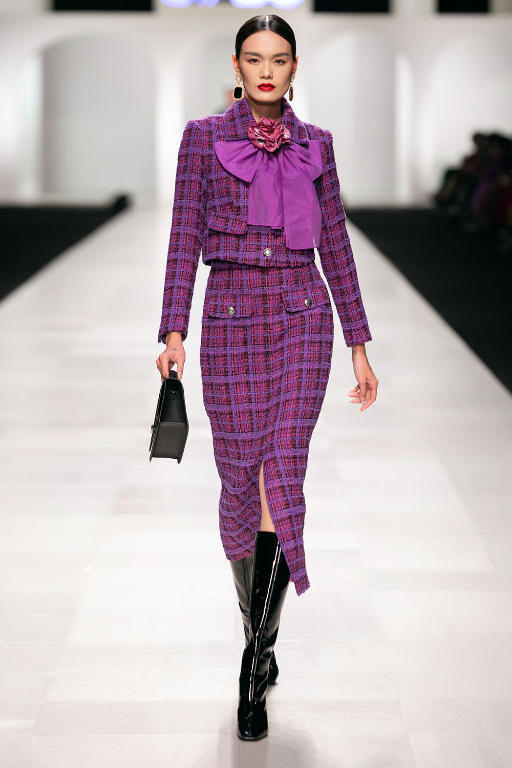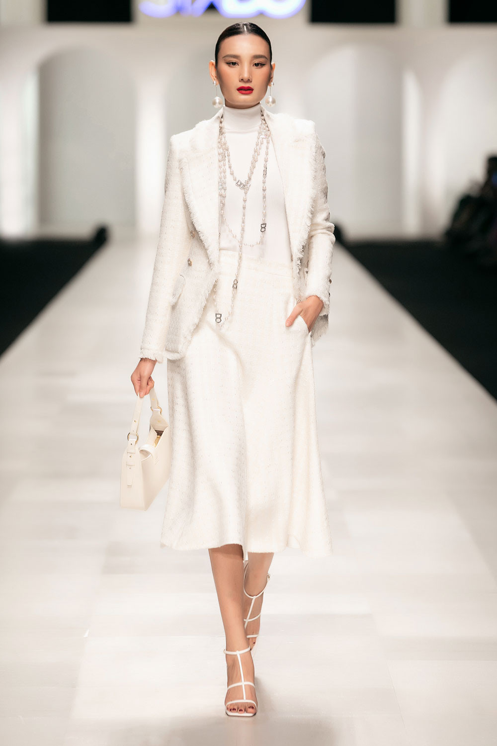 Phần 4 tập hợp những thiết kế được thực hiện trên nền vải tweed, chất liệu thịnh hành trong mùa Thu Đông. NTK tập trung khai thác những phom dáng dễ ứng dụng: chân váy chữ A ngắn, áo lửng, nhiều mẫu mang đậm dấu ấn thời trang thập niên 60…