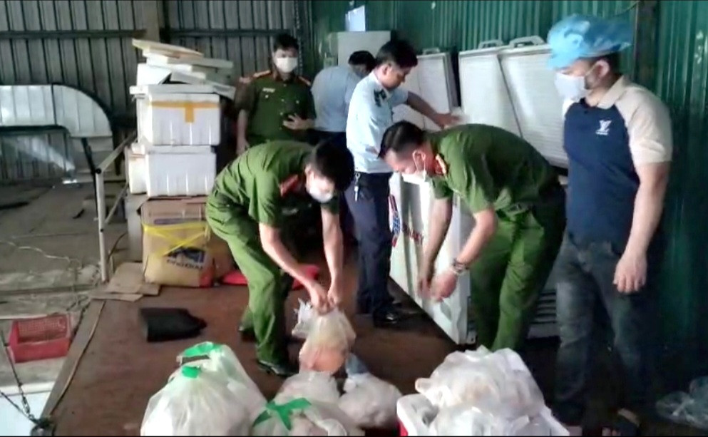 Trong hai ngày 9 và 10/5/2023, Đoàn kiểm tra liên ngành gồm Công an quận Bắc Từ Liêm, Đội Quản lý thị trường số 22, Phòng Cảnh sát môi trường - Công an TP Hà Nội - liên tiếp phát hiện, thu giữ và xử lý hơn 1 tấn thực phẩm đông lạnh không rõ nguồn gốc xuất xứ, không đảm bảo vệ sinh an toàn thực phẩm.