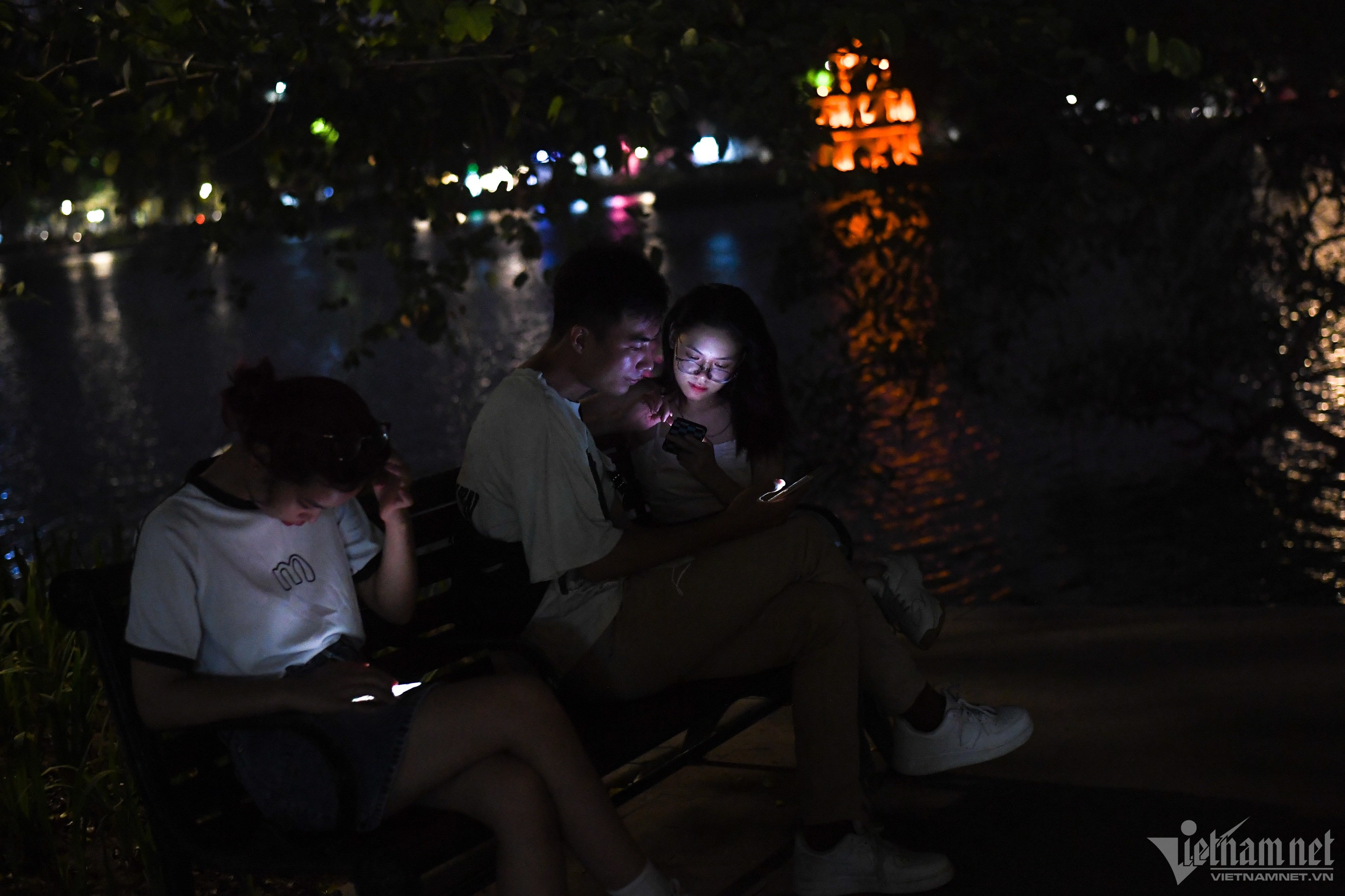 Khu vực ven hồ cũng là nơi nhiều bạn trẻ hẹn hò, ngồi hóng mát. "Mình cảm thấy không bất tiện cho lắm. Coi như hôm nay đang là Giờ Trái đất. Lúc tham gia giao thông thì hơi sợ vì tầm nhìn bị hạn chế", Bảo Dương chia sẻ.