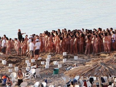 Được biết, hồi tháng 9 vừa qua, khoảng 1.200 tình nguyện viên người Israel từ 10 tới 60 tuổi đã đồng ý tham gia vào buổi chụp hình khỏa thân tập thể do nhiếp ảnh gia Spencer Tunick tổ chức tại Biển Chết.