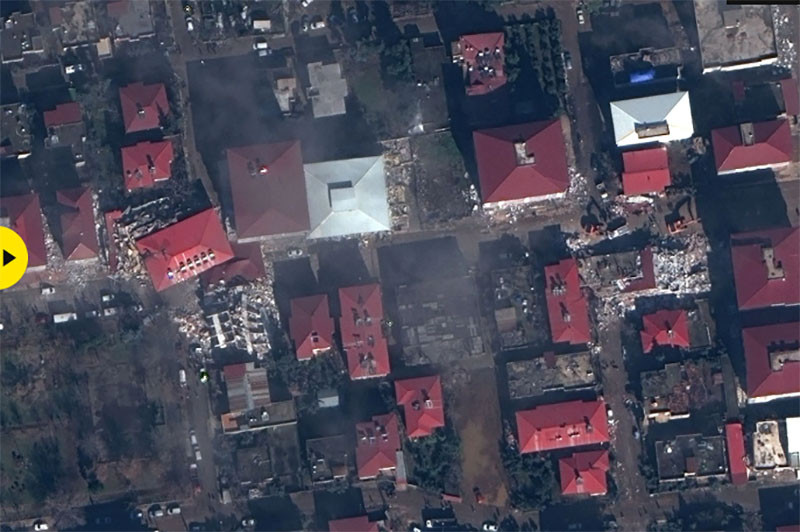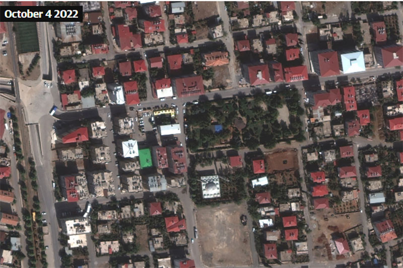 Việc so sánh giữa các ảnh chụp vệ tinh ngày 6/9/2019 và ngày 7/2/2023 đã phản ánh cách các lều trú tạm và phương tiện tập trung tại một số khu phố trung tâm Nurdağı ra sao trong những giờ đầu tiên sau thiên tai.