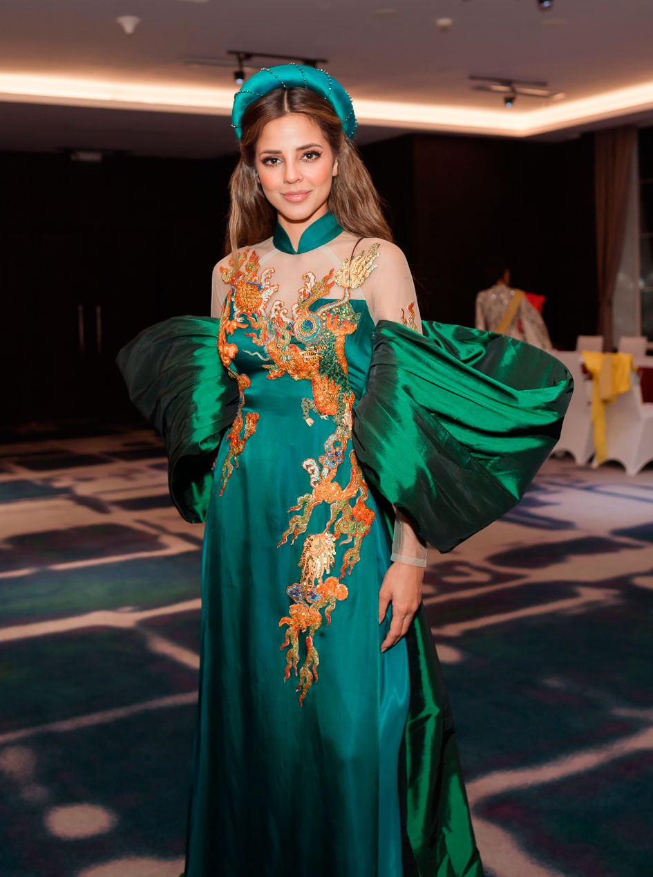 NTK Vũ Lan Anh cho biết trang phục được đổi phù hợp với vóc dáng của Luciana Fuster. Thiết kế được đổi và nàng hậu trình diễn là trang phục áo dài họa tiết chim phượng có phần tay áo loe, cổ áo được cắt cúp tạo đường cong nổi bật, đặc biệt 2 cầu vai được tạo dáng với kỹ thuật độn phồng tạo dáng vai kiêu sa sang trọng.