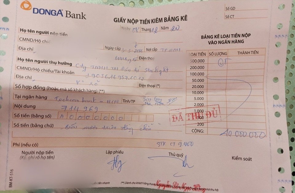 Nhà đầu tư nạp tiền tham gia sàn ngoại hối LCM vào tài khoản Công ty TNHH TM Điện tử Starlight. Ảnh: P.V |