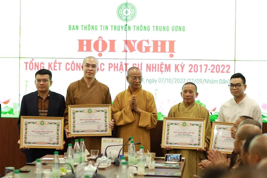Dịp này, TƯ GHPGVN tặng Bằng Tuyên dương Công đức cho 10 tổ chức và 14 cá nhân đã có những đóng góp xuất sắc trong công tác truyền thông Phật giáo nhiệm kỳ 8. Theo đó, Cổng thông tin Phật giáo Việt Nam vinh hạnh đón nhận 2 Bằng Tuyên dương Công đức của Hoà thượng Thích Thiện Nhơn - Chủ tịch HĐTS TƯ GHPGVN.