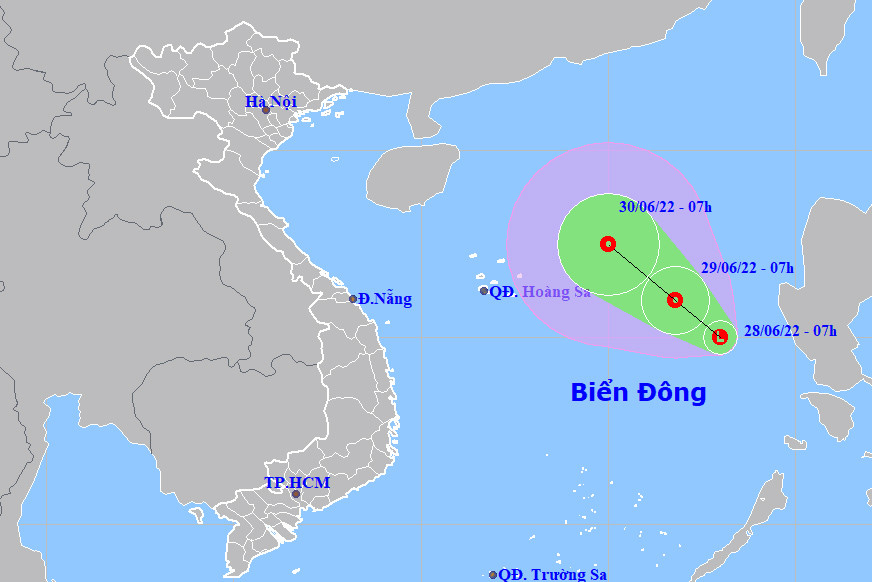 Dự báo trong 24 giờ tới, vùng áp thấp di chuyển chậm theo hướng Tây Bắc, mỗi giờ đi được 5-10km và có khả năng mạnh lên thành áp thấp nhiệt đới. Đến 7h ngày 29/6, vị trí tâm áp thấp nhiệt đới ở khoảng 16,0 độ Vĩ Bắc; 116,8 độ Kinh Đông, cách quần đảo Hoàng Sa khoảng 600km về phía Đông Đông Nam. Sức gió mạnh nhất vùng gần tâm áp thấp nhiệt đới mạnh cấp 6 (40-50km/giờ), giật cấp 8.
