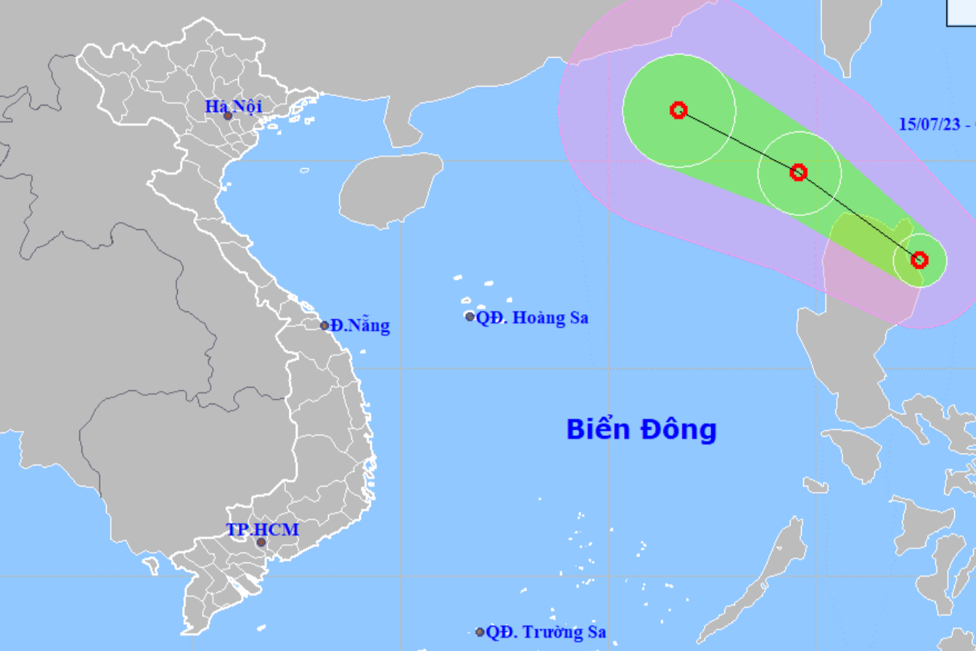 Dự báo, đến 13h ngày 15/7, áp thấp nhiệt đới ở khu vực phía Bắc Biển Đông, cách bán đảo Lôi Châu (Trung Quốc) khoảng 880km về phía Đông Đông Nam, di chuyển theo hướng Tây Tây Bắc với tốc độ 10-15 km/h và có khả năng mạnh lên thành bão; sức gió mạnh cấp 8, giật cấp 10.