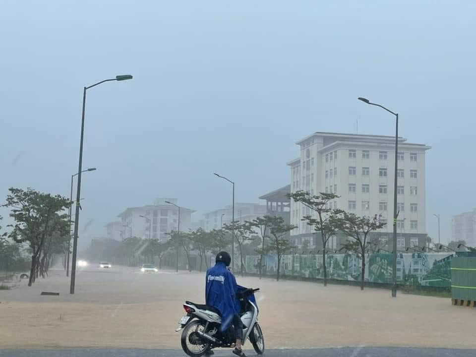 Tại TP Huế, mưa lớn cũng xảy ra, khiến nhiều tuyến đường giao thông ở những vị trí thấp trũng, khó thoát nước ngập cục bộ. Nhiều phương tiện giao thông qua lại bị tắt máy, hư hỏng.