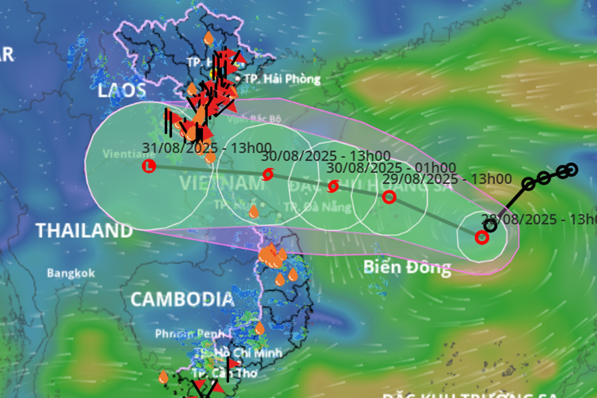 Áp thấp nhiệt đới đang trên vùng biển phía Đông khu vực Bắc Biển Đông, giật cấp 9; dự báo đi vào vùng biển Nghệ An - Đà Nẵng trong 48 giờ tới. Từ đêm 29-31/8, miền Bắc đến Huế khả năng xảy ra một đợt mưa lớn, có nơi đến 500mm.